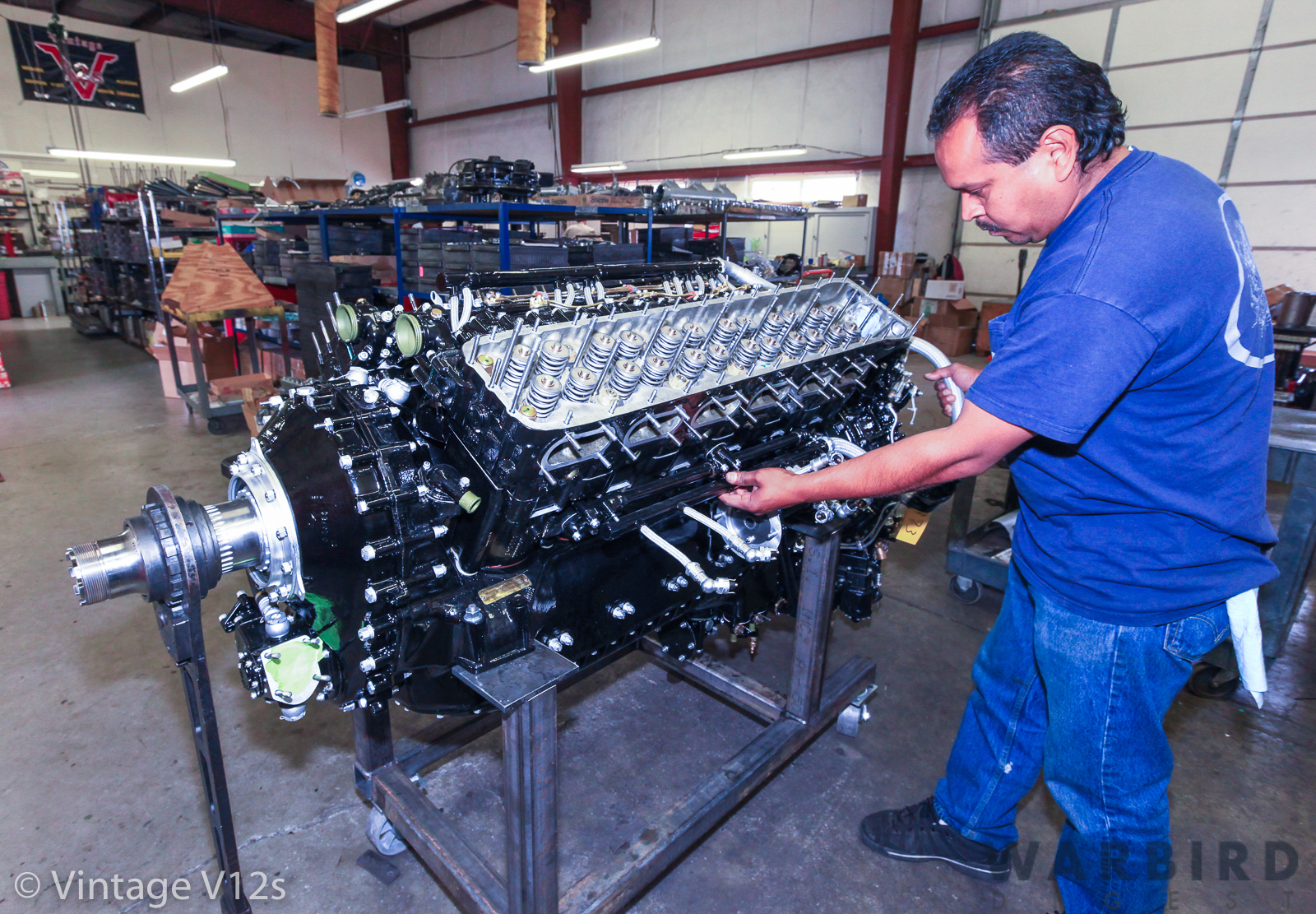 José Flores is now the owner, the champion leading Vintage V12s into the future. And it is so fitting for him to be at the helm, because working for Vintage V12s is practically the only job he has ever known. In a recent interview, Flores explained, “When I was 16 or 17, I worked across the street from Mike’s first location in Sun Valley, California. Not long after he started the company, in 1982 or 1983, I heard he was hiring, so I went and interviewed, and he hired me. I started out cleaning parts, training, and performing any job that supported engine assembly. Mike taught me everything I needed to know through on-the-job training. As I gained experience, I worked into engine assembly. When the shop manager quit, I was given the opportunity to step into that position.” At the time José bought the company, he was running the V12 shop while Mike oversaw the round engine shop. José expressed great respect for the man who gave him a chance and taught him so much, and added, “After so many years, we started to have different ideas about the business, so five years ago we came to an agreement and he sold me Vintage V12s and he kept Vintage Radials.” The ‘Vintage’ complex in Tehachapi is still home to both businesses, with Jose’s Vintage V12s operating from three buildings, while Mike’s Vintage Radials works from two others. Martin “Marty” King’s Vintage Carburetors is also located within the complex.