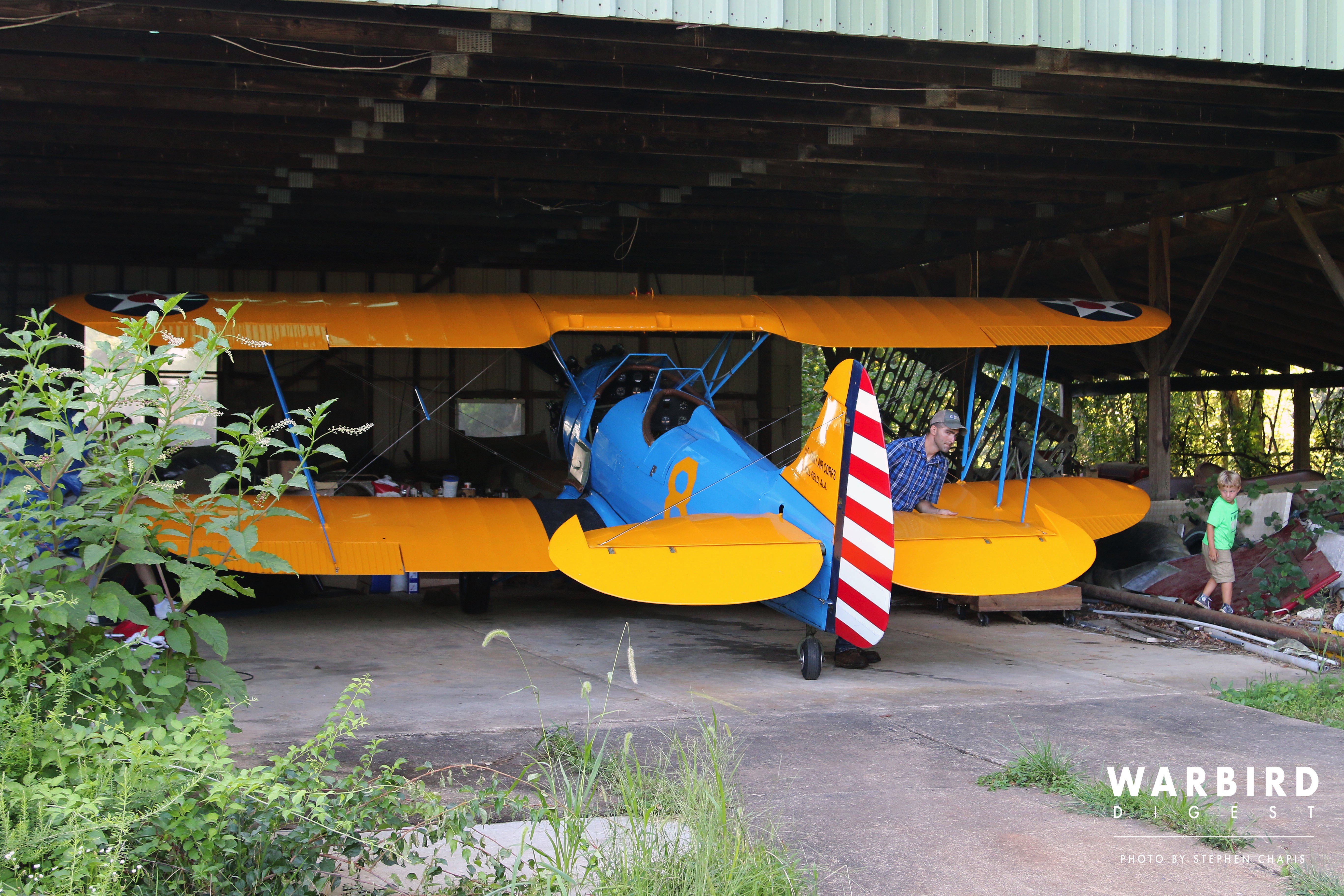 I got an aerobatic ride in a 450 Stearman that same weekend, and looked forward to visiting again, but that next visit wouldn’t happen for 27 years. In July 2015, I returned with my wife, Germaine, with the intent of writing an article about the place that is my field of the dreams. My point of contact was pilot/wingwalker Chuck Tippett and he suggested the weekend of the Fauquier County Fair because they would perform two flyovers of fairgrounds. When Germaine and I arrived at the field, the FCA 450 Stearman and the King’s PT-17 were already there, but Chuck said we had to drive over to the King’s farm to pick up the YPT-14.