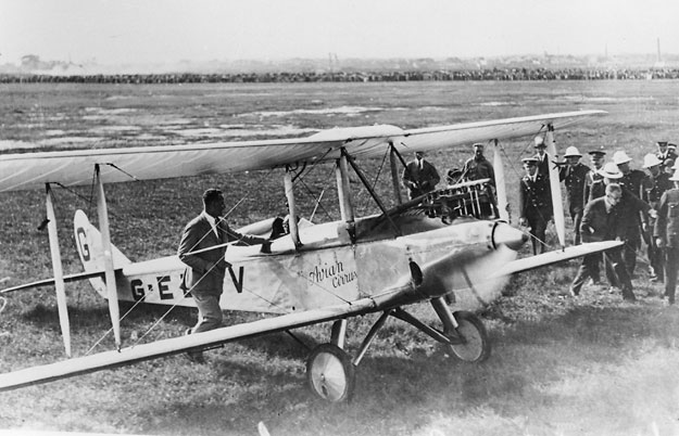 Yet the thought of flying from England to Australia was never far from Hinkler’s mind. Having now become a test pilot for Avro, flying such aircraft as the bulky Avro Aldershot, testing one prototype fitted with one of the first aircraft engines to turn out 1000 hp, the Napier Cub X-16 inline engine. He also participated in the Lympne light aircraft trials and won the 1924 Grosvenor Challenge Cup, flying an Avro Avis biplane, G-EBKP, which had been fitted with a Bristol Cherub two-cylinder horizontally opposed inline engine with 36 hp. He had also been a reserve pilot for the British seaplane racing team that attended the Schneider Trophy Cup held in Baltimore, Maryland, but upon his return to England, he would begin flying the aircraft that would gain him worldwide fame, an Avro Avian two-seat biplane with the British registration G-EBOV.