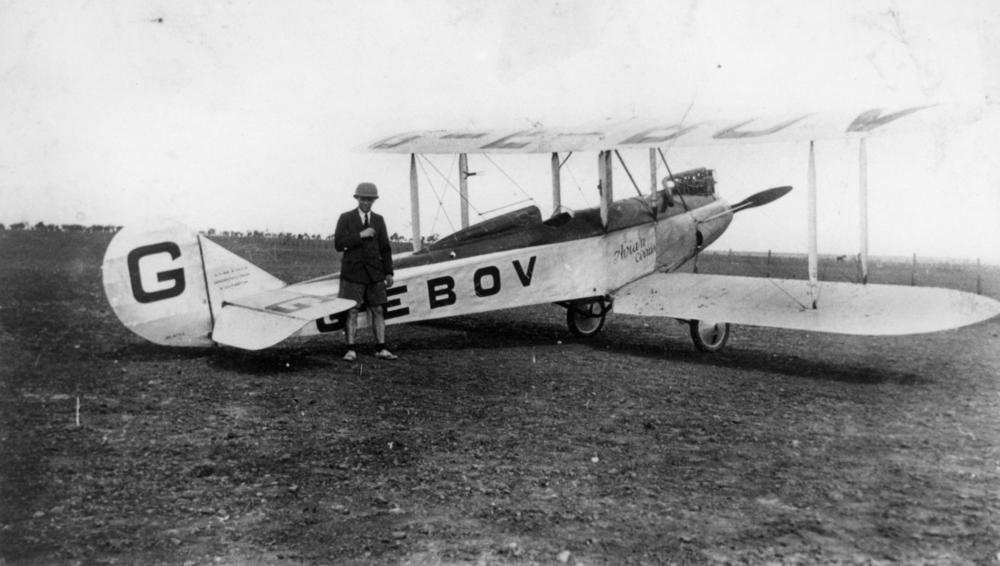 Built under construction number 5116, Avro 581 Avian G-EBOV was originally fitted with a 70 hp Armstrong Siddeley Genet radial engine. Bert Hinkler flew this aircraft during the Lympne light aircraft trials of September 1926, but despite the Avian having good flight characteristics, the Genet engine proved unreliable, and it failed to complete the trails. Nevertheless, the Avian was refitted with a Cirrus four-cylinder air-cooled inline engine, and Avro sold the aircraft to Bert Hinkler. It would be with Hinkler that G-EBOV mad to be used for long-range solo flights. In 1927, he flew the aircraft to become the first pilot to fly nonstop from England to Riga, Latvia, earning the Oswald Watt Gold Medal, an Australian award bestowed annually to Australian aviation figures for their contributions to aviation.