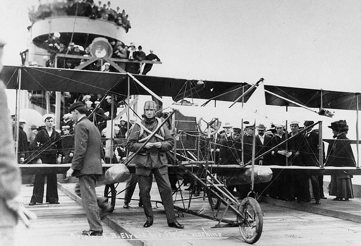 Around ten minutes after takeoff, Ely was over the anchored ship. He lined up his approach and when he was about 75 feet (23 meters) astern of the Pennsylvania, he cut his engine and began gliding towards the deck at a speed of around 40 miles per hour (64 kilometers per hour). Ely’s hooks snagged the ropes and at 11:01am, Eugene Ely had become the first pilot to land an airplane aboard a ship.