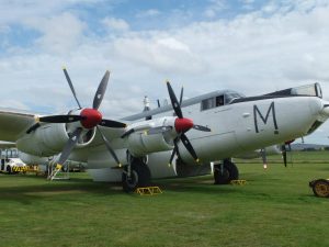 The Shackleton was powered by four Rolls-Royce Griffon 57 V-12 engines, each driving contra-rotating propellers. This configuration earned the aircraft its nickname, “The Growler,” due to the immense noise generated by its engines. With a top speed of 300 miles per hour and a range of 2,240 miles, the Shackleton was well-suited for long-endurance patrols. It was armed with two 20 mm Hispano cannons in the nose and could carry up to 10,000 pounds of bombs, torpedoes, depth charges, or naval mines.