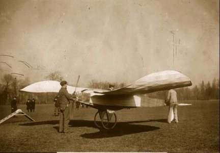 The Blériot V was a “pusher” type aircraft, with its engine mounted at the rear of the airframe to propel it forward. Its airframe featured a wooden “box-girder” fuselage, covered in silk, serving as the skin of the aircraft. The wings, also wooden, were covered in varnished paper. Propulsion came from a 24-horsepower Antoinette liquid-cooled V8 engine. Weighing just 573 pounds and with a wingspan of 25 feet 7 inches, the Blériot V was a relatively small and lightweight aircraft.