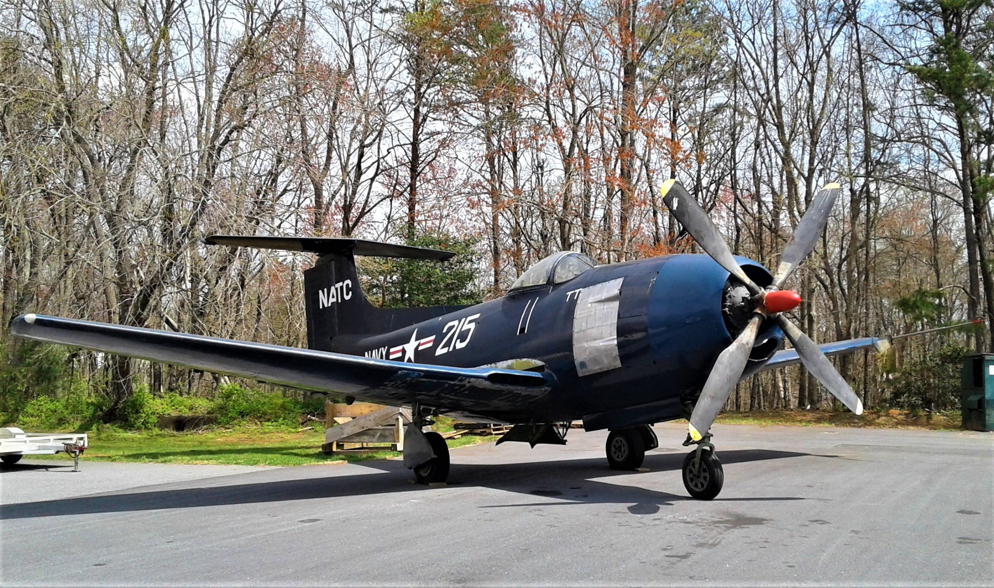 Of the three XF15Cs built, only one example survives today. This is the third and last example that was built, XF15C-1 BuNo 01215. With BuNo 01214 being scrapped at the end of its service, and BuNo 01215 logging only 56 flying hours before it was stricken from the Navy’s inventory in May 1947, it was kept in storage for preservation, and was eventually placed on display at the Bradley Air Museum (now the New England Air Museum (NEAM)) at Bradley International Airport in Windsor Locks, Connecticut, where it survived a Category F4 tornado that devastated the museum on October 3, 1979. Eventually, the aircraft was transferred to the now-closed Quonset Air Museum in Quonset, Rhode Island, though it was officially on loan from the National Naval Aviation Museum (NNAM) in Pensacola, Florida. When the Quonset Air Museum closed in 2015, the Curtiss XF15C-1 was eventually transferred by the NNAM to its present-day home at the Hickory Aviation Museum in Hickory, North Carolina. While this rare aircraft is currently on outdoor display, the HAM is building a new indoor facility to house the aircraft in its collection, including the last Curtiss XF15C-1.
