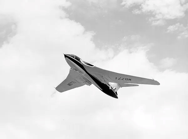 The Victor came during a pivotal point in British military history. With a fleet of piston engine bombers such as the Avro Lancaster and the Avro Lincoln, combined with the development of the British atomic program, the Royal Air Force was in need of a new line of strategic jet bombers, particularly to provide a deterrent against the growing power of the Soviet Union. The result was a series of submitted designs for new jet bombers. Handley Page’s proposal, developed in response to Operational Requirement OR.230, which called for a long-range bomber with a 2,000 nautical mile (2,300 mi; 3,700 km) radius of action at a height of 50,000 ft (15,000 m), a cruising speed of 575 miles per hour (925 km/h), and a maximum weight of 200,000 lb (91,000 kg) when fully loaded. Handley Page’s submission, the HP.80, was designed with a crescent-shaped swept wing developed by HP’s German-born aeronautical engineer Dr. Gustav Lachmann and his deputy Godfrey Lee. Handley Page also made a testbed for the HP.80’s wings out of a heavily modified Supermarine Attacker that was called the HP.88. However, the HP.88 program came to an abrupt end when the aircraft disintegrated in mid-air during a practice flight where it exceeded the structural integrity following severe pitching oscillation.