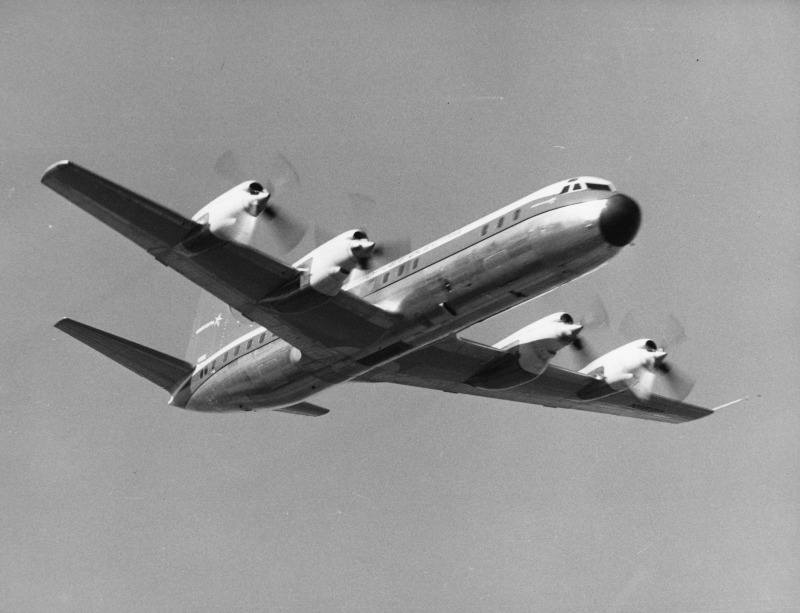 On the morning of December 6, 1957, the prototype L-188 Electra, construction number 1001, N-number N1881, took off from Lockheed Air Terminal (today Hollywood-Burbank Airport) in Burbank, California. Onboard were Lockheed’s chief test pilot, Herman “Fish” Salmon, as pilot in command, with Roy Wimmer in the right seat as co-pilot, and flight engineers Louis Holland and William Spreuer. After lifting off Runway 27 at 10:44am, they headed out to sea, having secured permission to fly within naval airspace off the southern California coast between Point Mugu and San Diego, followed by two chase Lockheed planes (a T-33 and a Super Constellation). Salmon reported that “She controls beautifully. No sweat,” and returned to Burbank after 1 hour, 27 minutes in the air, having climbed to 14,000 feet and reached speeds of 400mph.