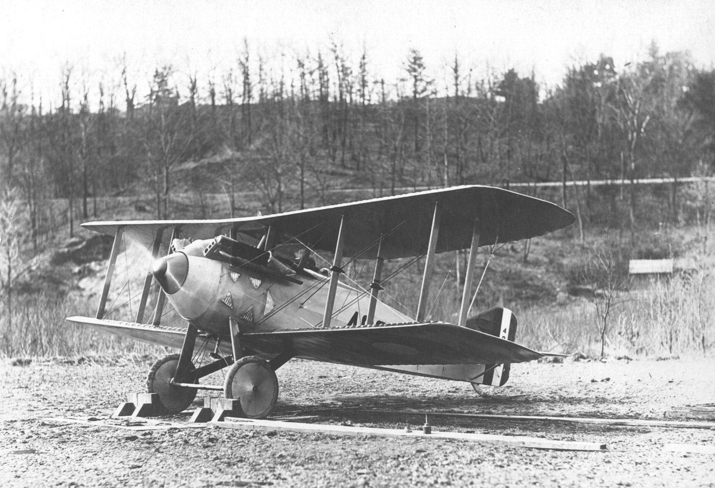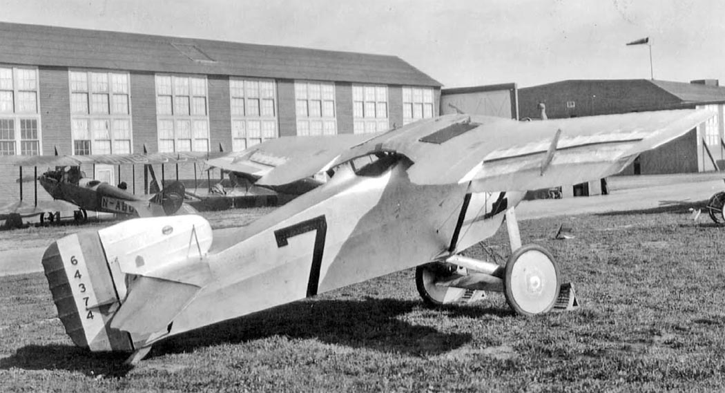 The most promising of these designs came from the Thomas-Morse Aircraft Corporation of Ithaca, New York, which had gained success with its S-4 Scout advanced trainer, which was designed by the English aircraft designer Benjamin Douglas Thomas, who had worked with Vickers and Sopwith before moving to work with the Curtiss Aeroplane and Motor Company, having designed the Curtiss JN-4 “Jenny” trainer. After two other designs, the MB-1 and MB-2, were rejected during the prototype stage, Thomas presented his plan for a single seat biplane with two sets of interplane struts similar to the SPAD XIII. The radiator was mounted in the center section of the upper wing, similar to the German Albatros fighters, and that same center section had a cutout for the pilot sitting in the cockpit, who also had two synchronized .30 caliber machine guns at his disposal. The US Army Air Service would place an order for four prototypes in September 1918.