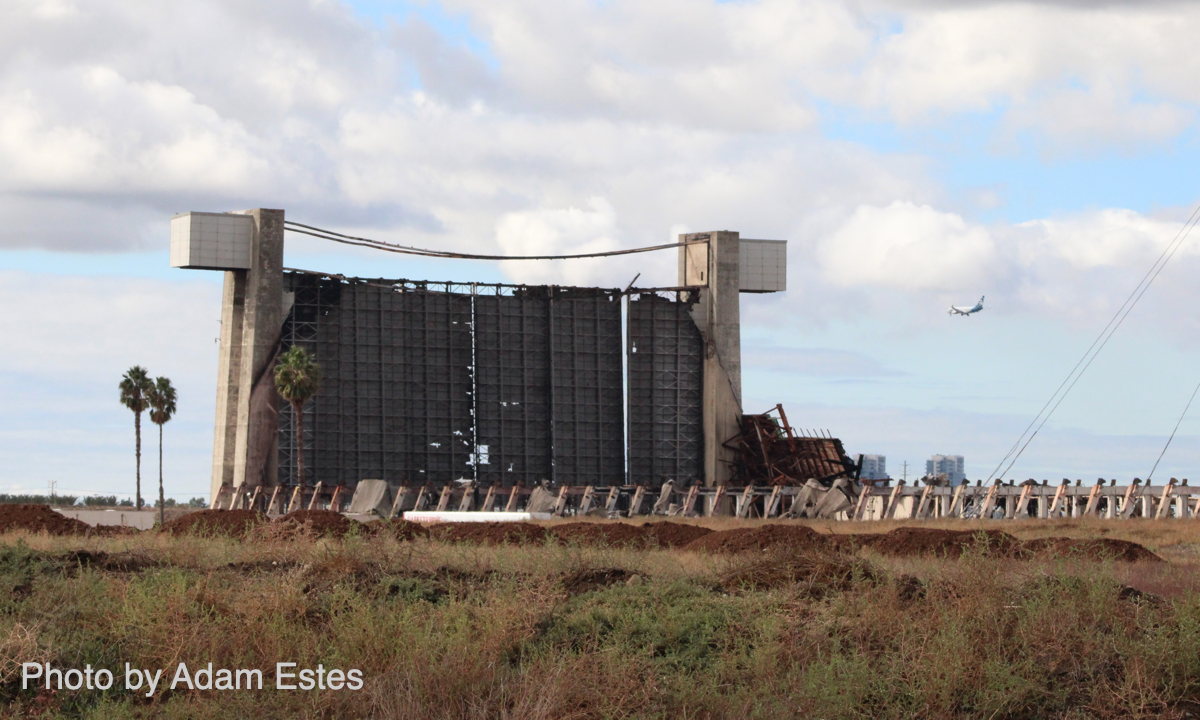 Local schools were temporarily shut down due to the detection of asbestos fibers spread from the hangar, but have now been reopened. The other blimp hangar (Hangar 2; South Hangar) remains standing. Adam Estes
