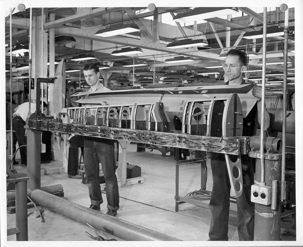 While there was an obvious need for Goodyear to continue their core business manufacturing tires and other vital rubber products, they also began making components for fixed-wing airplanes. This began in earnest during 1939 when the newly-renamed Goodyear Aircraft Company received a contract from the Glenn L. Martin Company to build empennages for a then brand new medium bomber design, the Martin B-26 Marauder.
