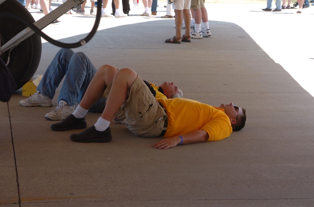 SkyReach volunteers from the NAHF working the Duggy duty were led by an indomitable retired and married couple of pilots from Dayton, Jack and Betty Darst. They nearly exhausted themselves shepherding thousands through Duggy over the hot and steamy three-day event. The Darsts would benefit from the practice, as just a week later, they’d be following Duggy up to Oshkosh for EAA AirVenture, a week-long convention and air show typically attracting over 600,000 people. And at Oshkosh, Duggy would be impossible to miss. Odie received word that not only would Duggy be placed on the famed Aeroshell Square, the centrally located ramp showcasing the fly-in’s most significant aircraft on static display, but Duggy would fly at least once each day, dropping the Liberty Jump Team for the traditional show-opening National Anthem. Kaplan, who had been attending Oshkosh since 1992, was thrilled. EAA was huge on youth initiatives, and SkyReach was going to get a LOT of attention, as well. Sadly, just days before the start of AirVenture, Kaplan shared news with the crew that Conrad, at age 58, had passed on July 23rd. The timing was ironic given that his first civilian job was as Wittman Field airport manager, Oshkosh, and EAA was long near and dear to Conrad and his family. The entire Duggy team was surprised and heartened to soon learn that Conrad had made a generous donation to help support their AirVenture appearance. For those unfamiliar with the scale and importance of Oshkosh to the aviation community, suffice it to say, as Carley would put it, it’s off the hook. Staff support, let alone all the logistics, can be a challenge. Such a massive, week-long event calls for all hands on deck, and Odie fortunately had additional seasoned crew in his own family and warbird network. Along with his wife, Donna, Odie’s sons, Casey and Brady, and daughter Halley, joined Challans and Carley, who also had his son along. Odie enlisted his friend and fellow high-time warbird pilot, Doug Rozendaal, for good measure. (11)
