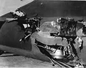 Although the tail actually bounced and swayed in the wind and twisted when the plane turned and all the control cables were severed, except one single elevator cable still worked, and the aircraft still miraculously flew! The tail gunner was trapped because there was no floor connecting the tail to the rest of the plane. The waist and tail gunners used parts of the German fighter and their own parachute harnesses in an attempt to keep the tail from ripping off and the two sides of the fuselage from splitting apart. While the crew was trying to keep the bomber from coming apart, the pilot continued on his bomb run and released his bombs over the target.