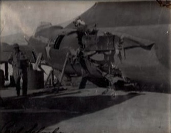 The famous photo of the plane flying is from the Flying Flitgun 340th bomb squadron 97th bomb group. I know this because the Flying Flitgun was my father’s plane and it was famously named by Margaret Bourke-White. My dad was the ball-turret gunner on the Flying Flitgun and saw the accident happen.