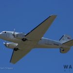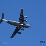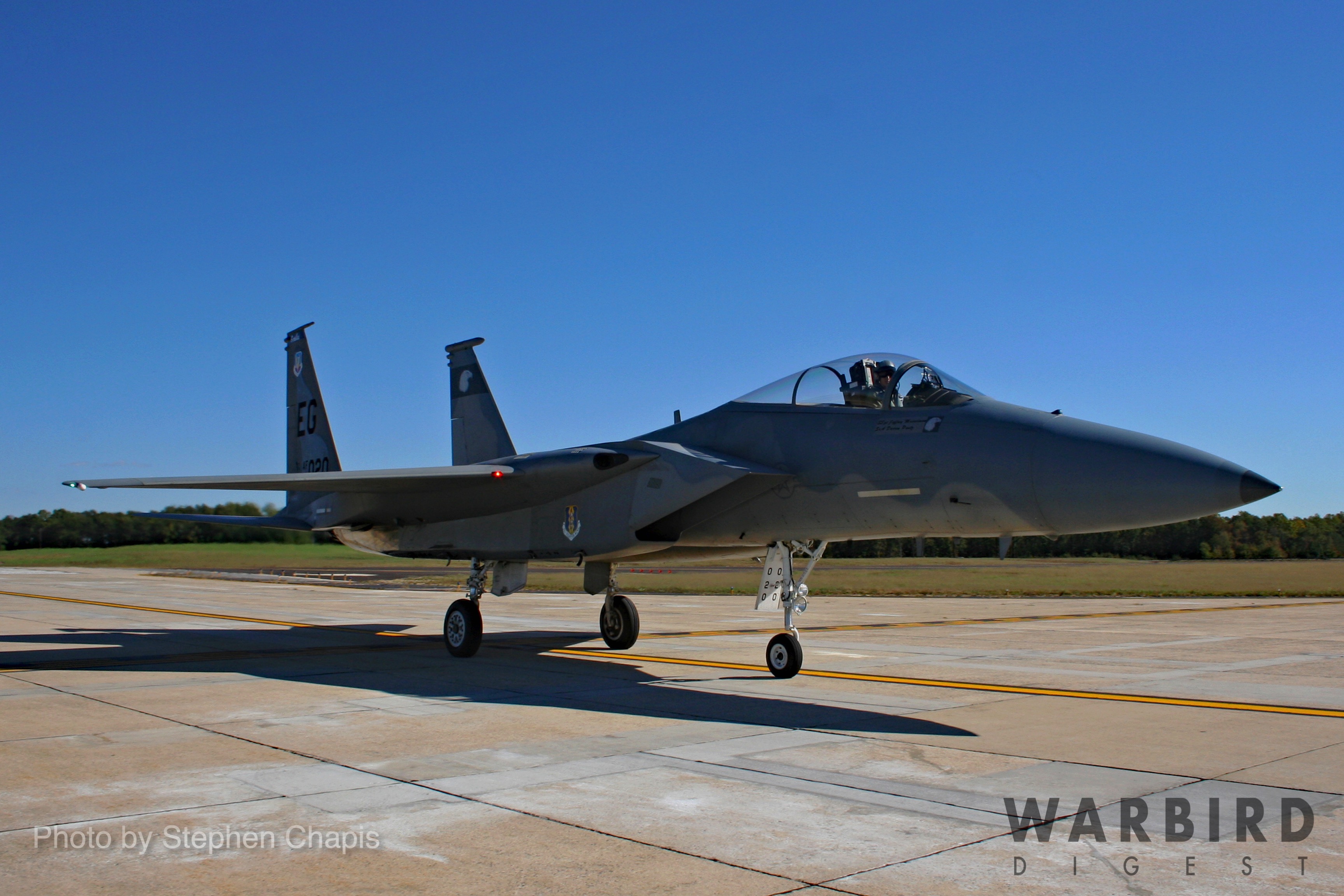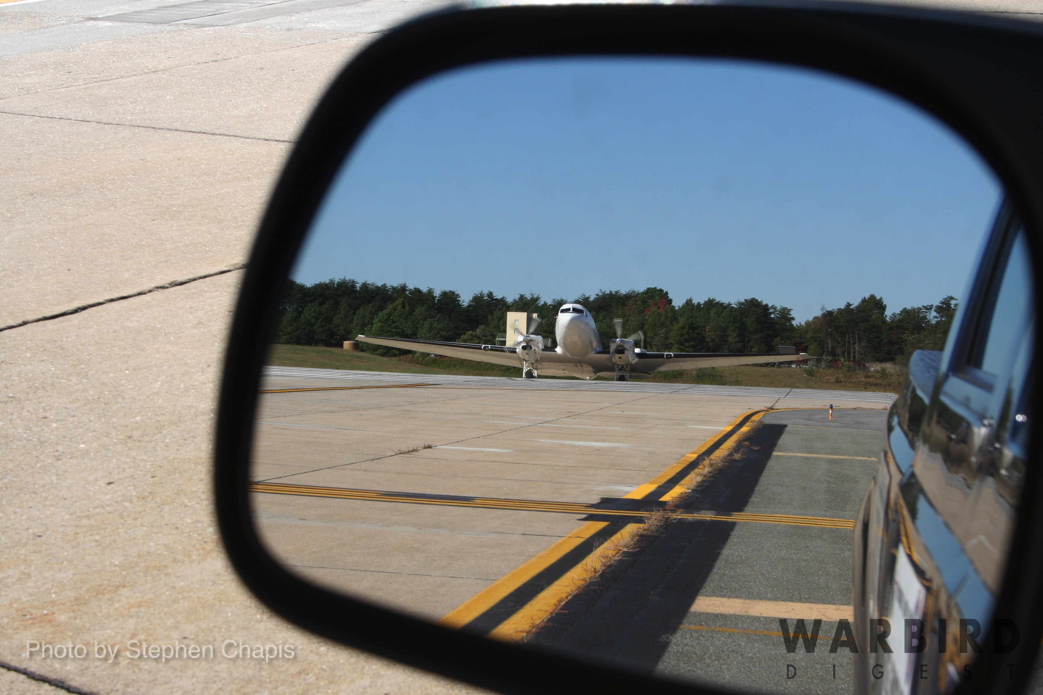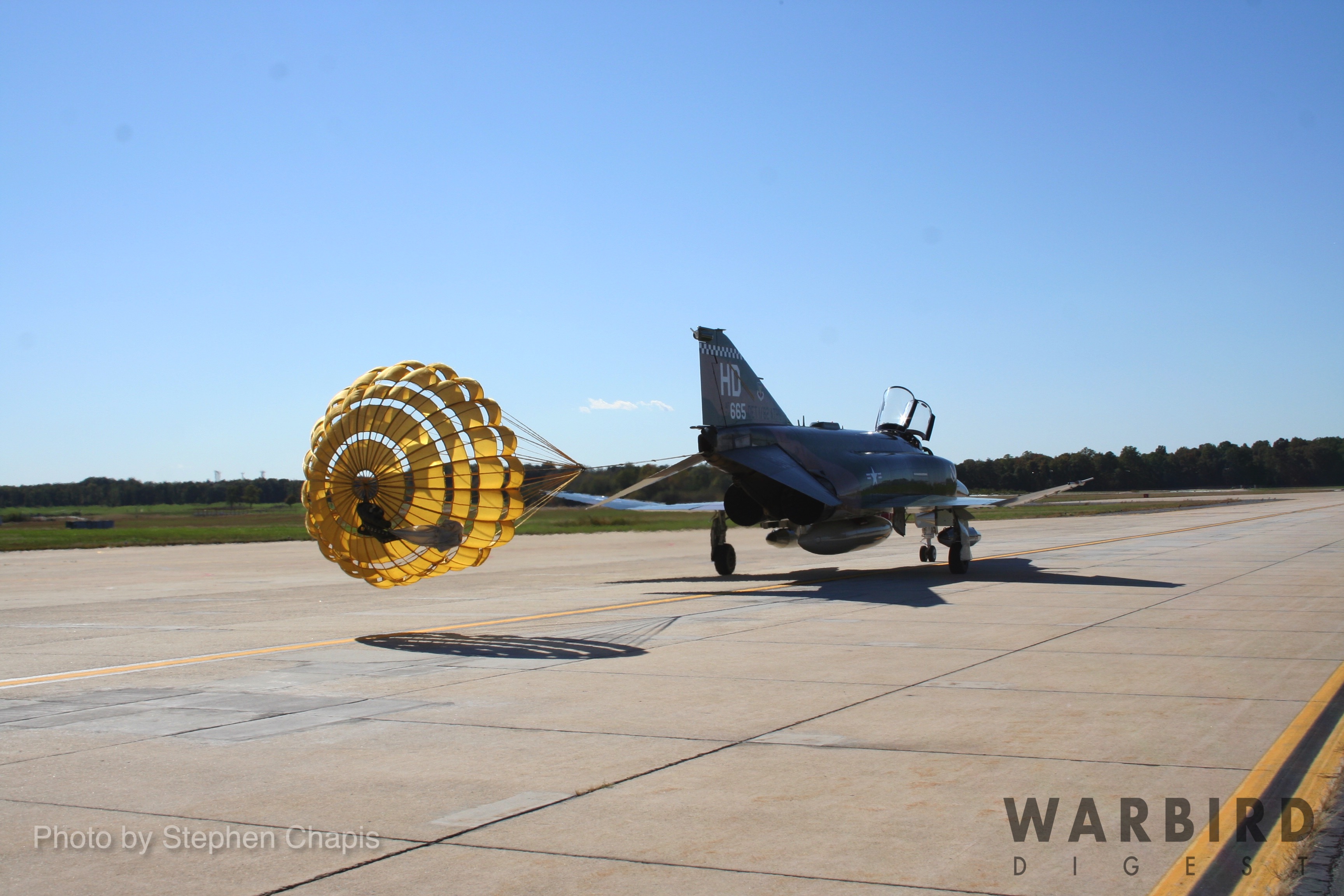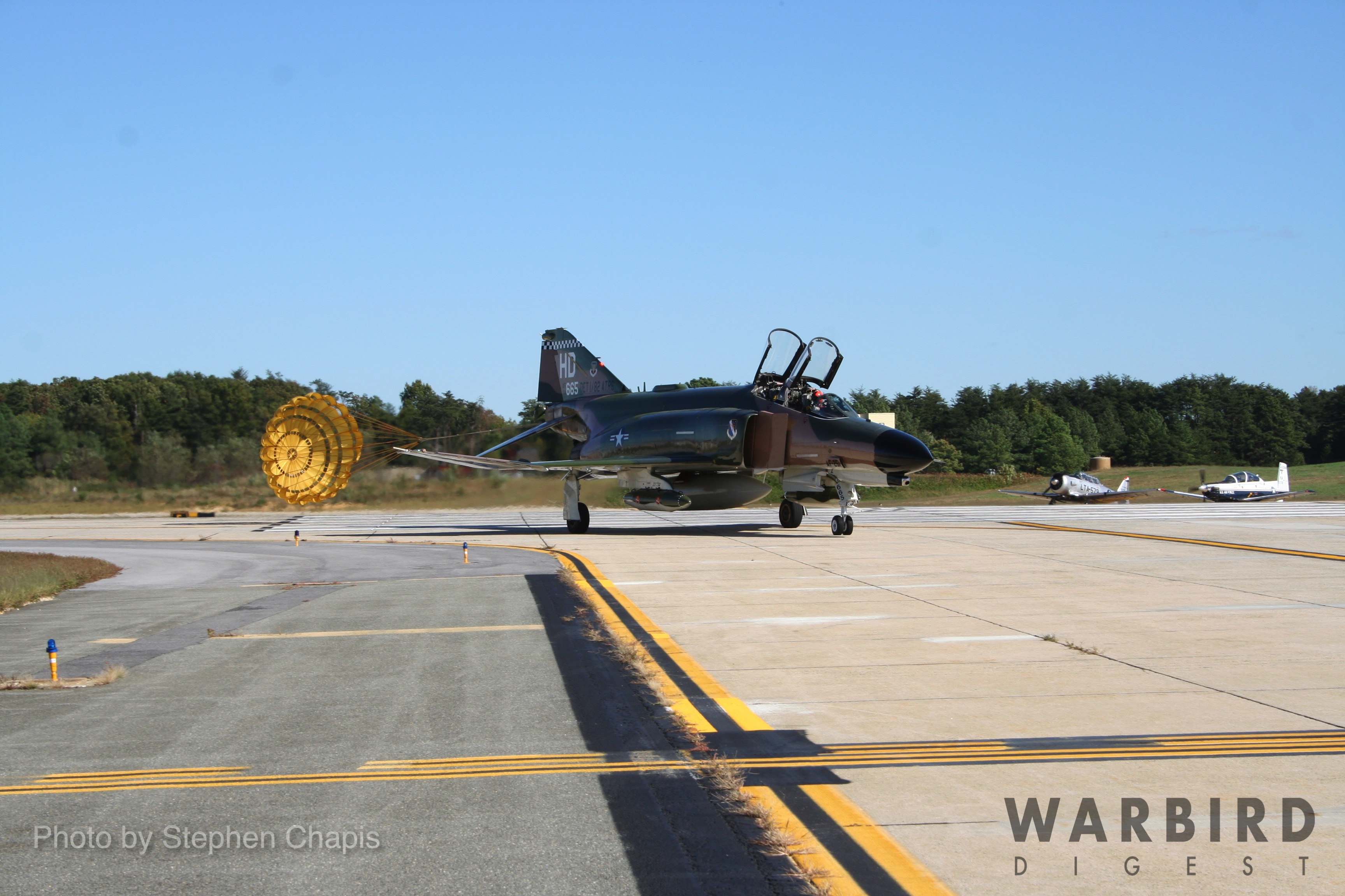 The first aircraft to come by was the C-17; this required our jets to re-position to another ramp to make room for the massive Globemaster III. The C-17 pilot had to maneuver to the left side of the taxiway to clear our truck; even so the wingtip nearly was over our heads as he passed. Once safely passed our truck he steered back onto the centerline which buffeted our truck (and me standing outside) a little because the outboard engines hang over the taxiway edges. Five minutes later the F-4 lands and taxies by still trailing his drogue chute. The pilot waves as I snap his picture. Pilots love to have their picture taken. The F-4 is quickly followed by its successor, the F-15 Eagle. This Eagle is the East Coast Demo jet. It is starting to calm down now and the T-6 and T-6A cross the runway. The last aircraft to pass our truck was the Turbo DC-3. Unfortunately for me the Stearman, F-86, B-17, and B-24 turned off at mid-field and the F-22 and the Thunderbirds did not return to Andrews. Once the Gooney Bird passes us, Andrews Ground clears us across the runway, and we return to our shop and head home for the day.