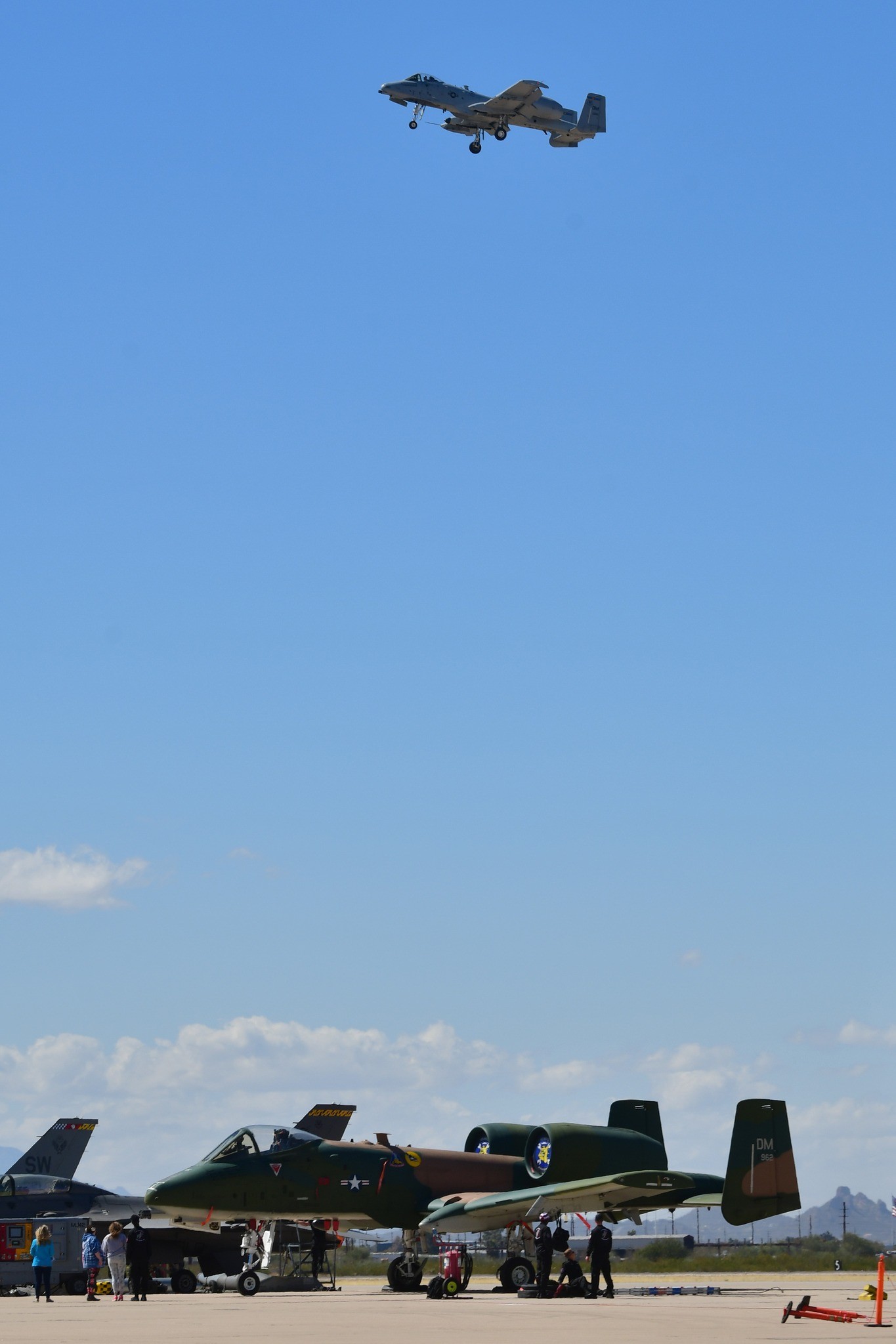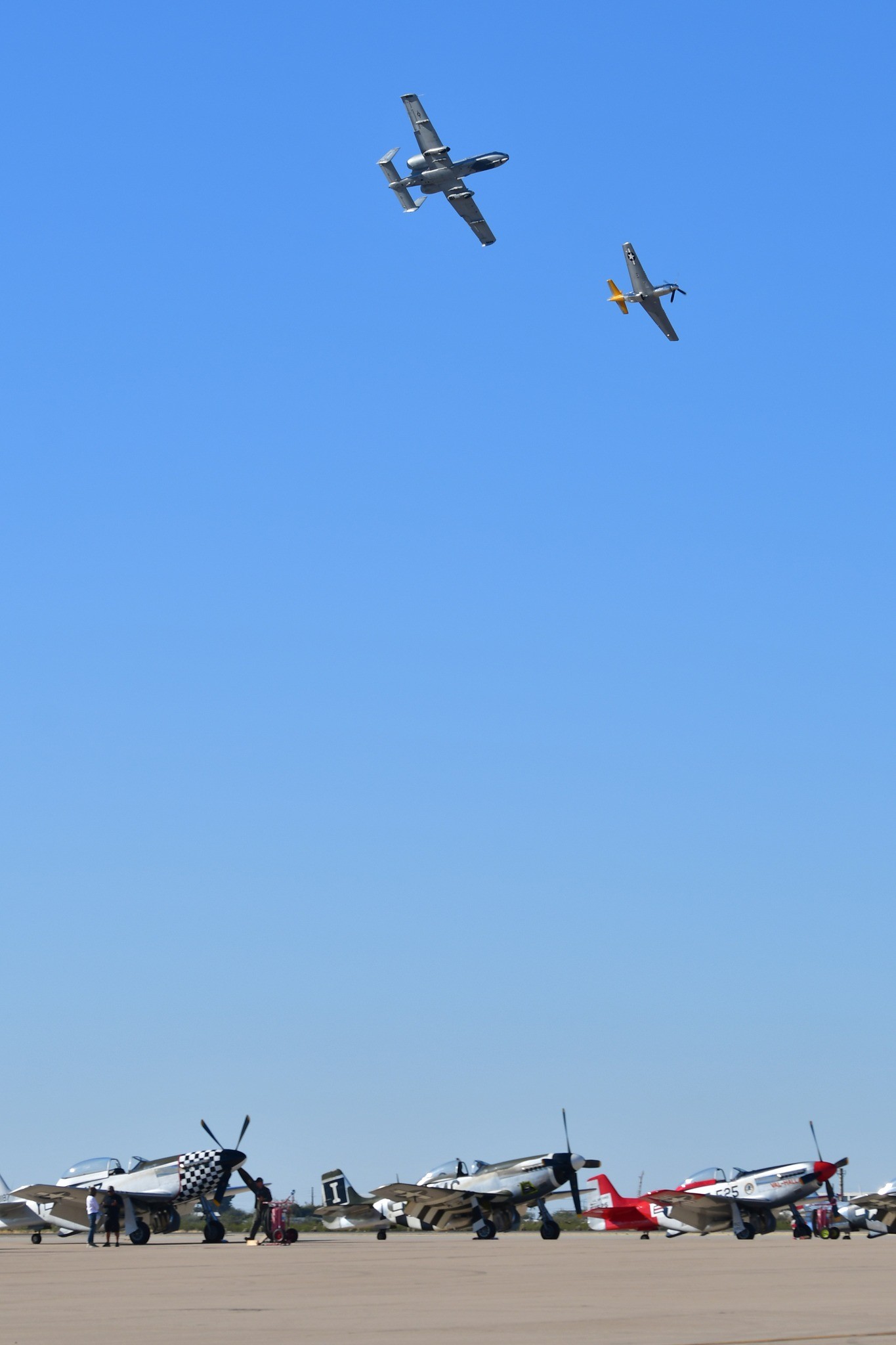 Air Combat Command aircraft that participated in the recent Heritage Flight training regimen included the F-35 Lightning II, F-22 Raptor, and F-16 Fighting Falcon. The A-10 Thunderbolt II Demonstration Team, based at Davis-Monthan, also took part.