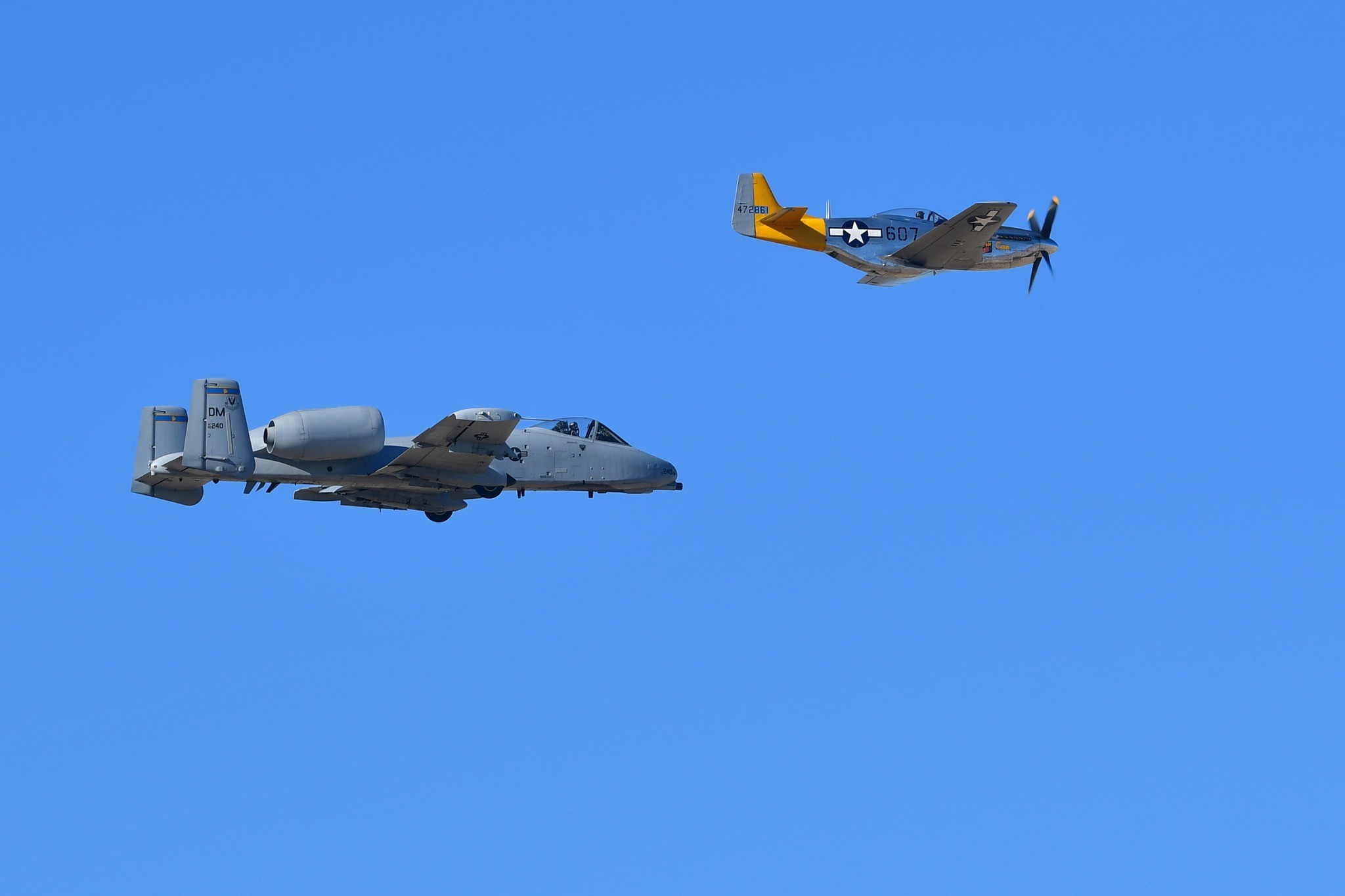 The 2022 training clinic, officially known as the Heritage Flight Training and Certification Course, took place over this past weekend (March 3-6), hosted by Air Combat Command at Davis-Monthan Air Force Base. Indeed Davis-Monthan AFB has held these aerial demonstration training events every year since 2001. The Air Force Heritage Flight Foundation nonprofit organization helps to fund civilian participation in these air show collaborations.