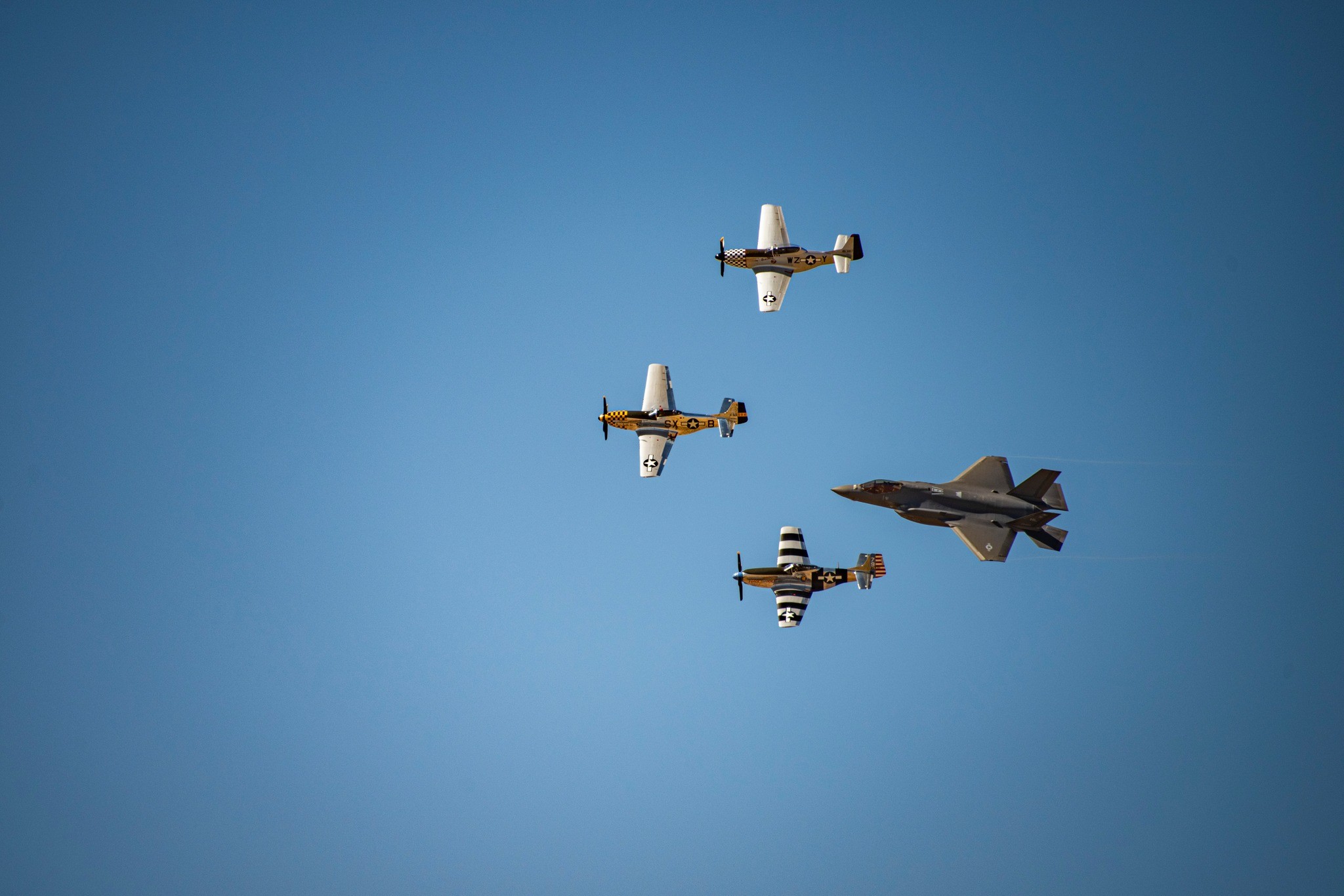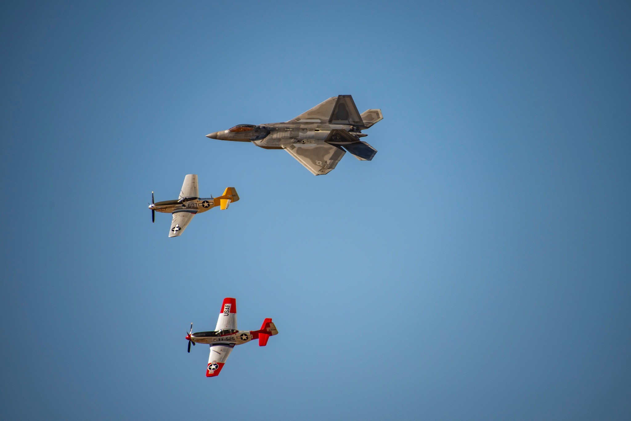 If you have attended an air show in the USA any time in the past couple of decades, the chances are pretty high that you witnessed a formation flight featuring both civilian-owned warbirds and active duty examples of modern U.S. Air Force combat jets. These ‘Heritage Flights’ started taking place officially in the buildup to the USAF 50th Anniversary celebrations in 1997, and they proved to be extremely popular with the public. As a result, these performances continued in subsequent years, with literally hundreds of appearances having now taken place across the country.