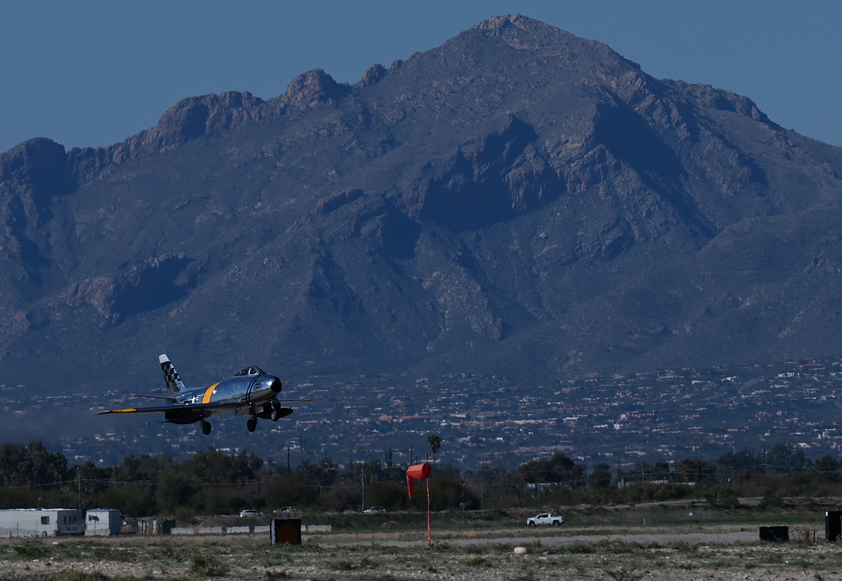Canadair Sabre HELL-ER BUST X landing after one of the training sorties. The original F-86 destroyed nearly 800 MiG-15s during the Korean War. [USAF photo by Staff Sgt. Abbey Rieves]