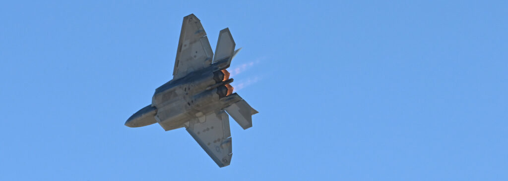 The F-22 Demonstration Team flies at airshows around the globe, performing air demonstrations that showcase the fighter’s impressive performance. [USAF photo by Staff Sgt. Nathan Call]