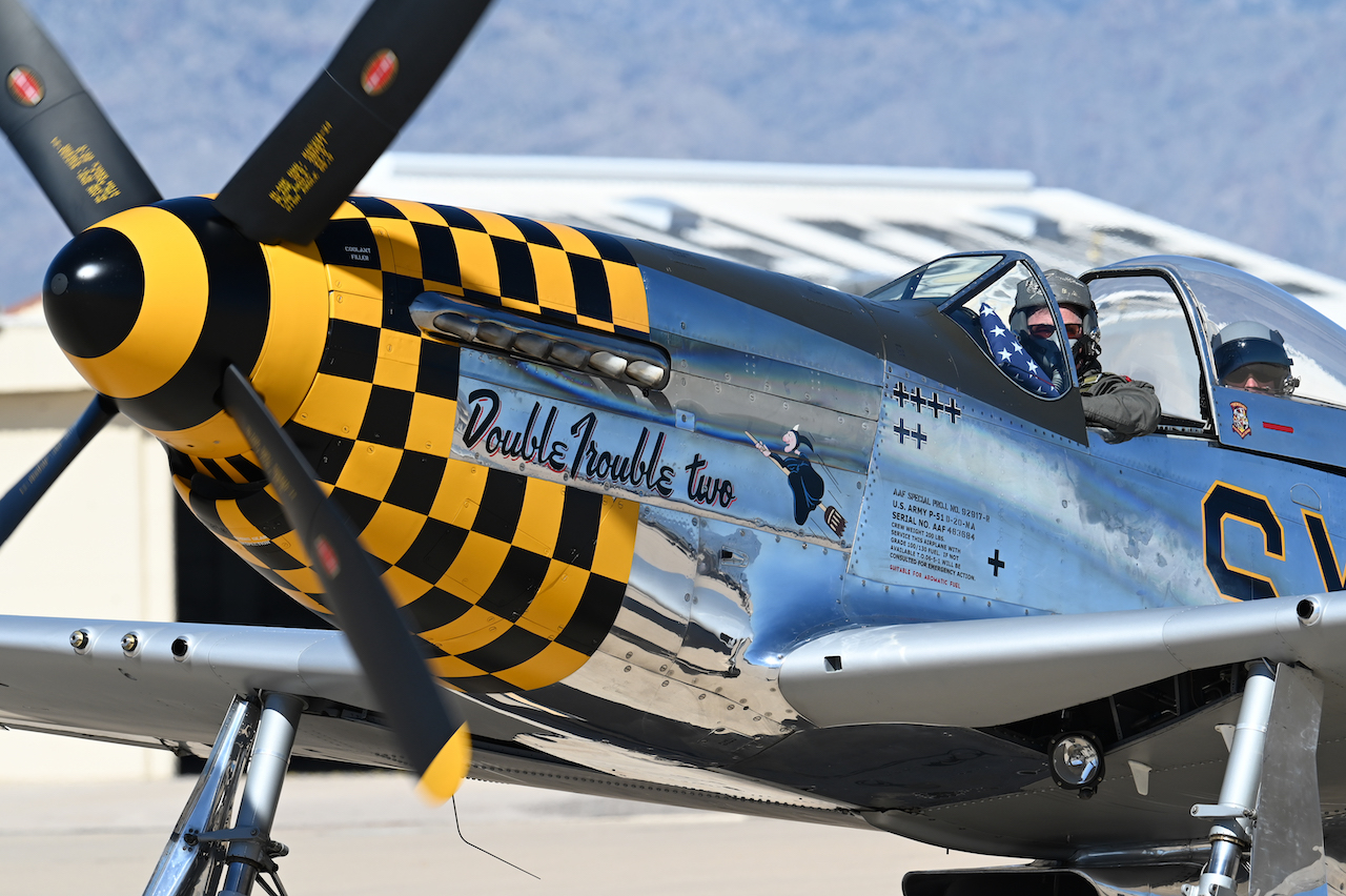 P-51 Mustang Double Trouble Two taxis on the Davis-Monthan ramp. Heritage flights were flown with past and current USAF aircraft to honor the past, present and future of American air power. [USAF photo by Staff Sgt. Nathan Call]