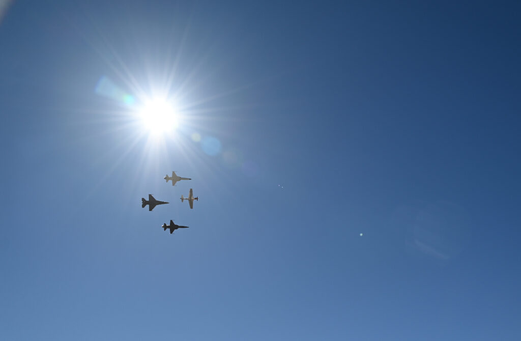 If you have attended an air show in the USA any time in the past couple of decades, the chances are pretty high that you witnessed a formation flight featuring both civilian-owned warbirds and active-duty examples of modern U.S. Air Force combat jets. These ‘Heritage Flights’ started taking place officially in the buildup to the USAF 50th Anniversary celebrations in 1997, and they proved to be extremely popular with the public. As a result, these performances continued in subsequent years, with literally hundreds of appearances having now taken place across the country. Despite the seemingly effortless manner in which these aircraft arc gracefully across the sky, it requires tremendous skill to place aircraft with dramatically different performance characteristics in such tight formations; it also requires a lot of practice. Only a handful of pilots, both active military and civilian, are approved to take part in these formations, and each year they get together before the air show season begins to work up their routines and practice them in flight. The 2024 training clinic, officially known as the Heritage Flight Training and Certification Course, took place this past weekend, hosted by Air Combat Command at Davis-Monthan Air Force Base. Indeed Davis-Monthan AFB has held these aerial demonstration training events every year since 2001. The Air Force Heritage Flight Foundation nonprofit organization helps to fund civilian participation in these air show collaborations.