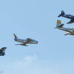 While most spectators did not know the special significance, warbird enthusiasts looked on in anticipation as John O’Connor flew in and made several passes in his newly finished ‘AU-1’ Corsair wearing a unique gray paint scheme before departing the show without landing. Then Mark Novak and Tim Savage launched in Savage’s A-26 Invader as Mike Gillian arrived on the scene in his FM-2 Wildcat.