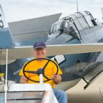 That evening as pilots, crews, volunteers, and VIPs mingled, Airport Manager Chuck Studer was speaking with media as friend and TBM owner Brad Deckert stood nearby. Chuck said, “The veteran parade was so well received that even if we didn’t fly the TBMs, it was still a big success.” Brad gave him a look that only a close friend can get away with and said with playful sarcasm, “Oh, okay. Thanks a lot.” Of course the friends were teasing and clarification was unnecessary. One cannot witness the flight of a warbird without imagining the world and the men when they were instruments of war, and the sacrifices made in epic struggles of life and death. Tim Gillian, the event’s emcee , shared, “Already there are many photos online and one was very moving; a World War Two veteran had his hand on our airplane, with the flag flying over his head, and his head was down. It was moving.” That one image captured a powerful moment for an aging American hero, one of many experienced during the successful 2018 TBM Avenger Salute To Veterans.