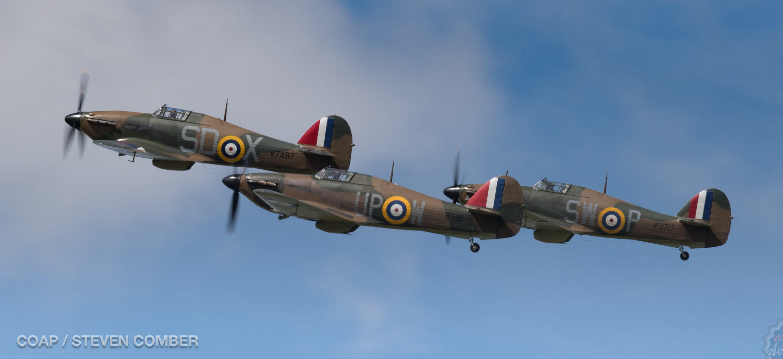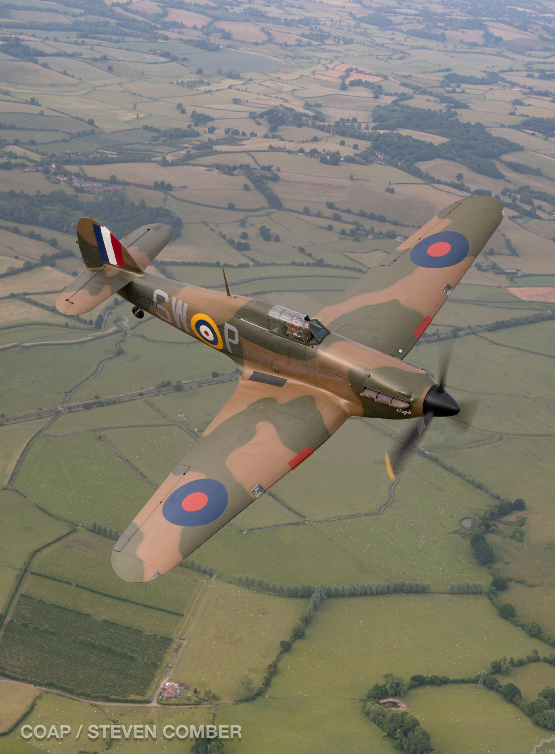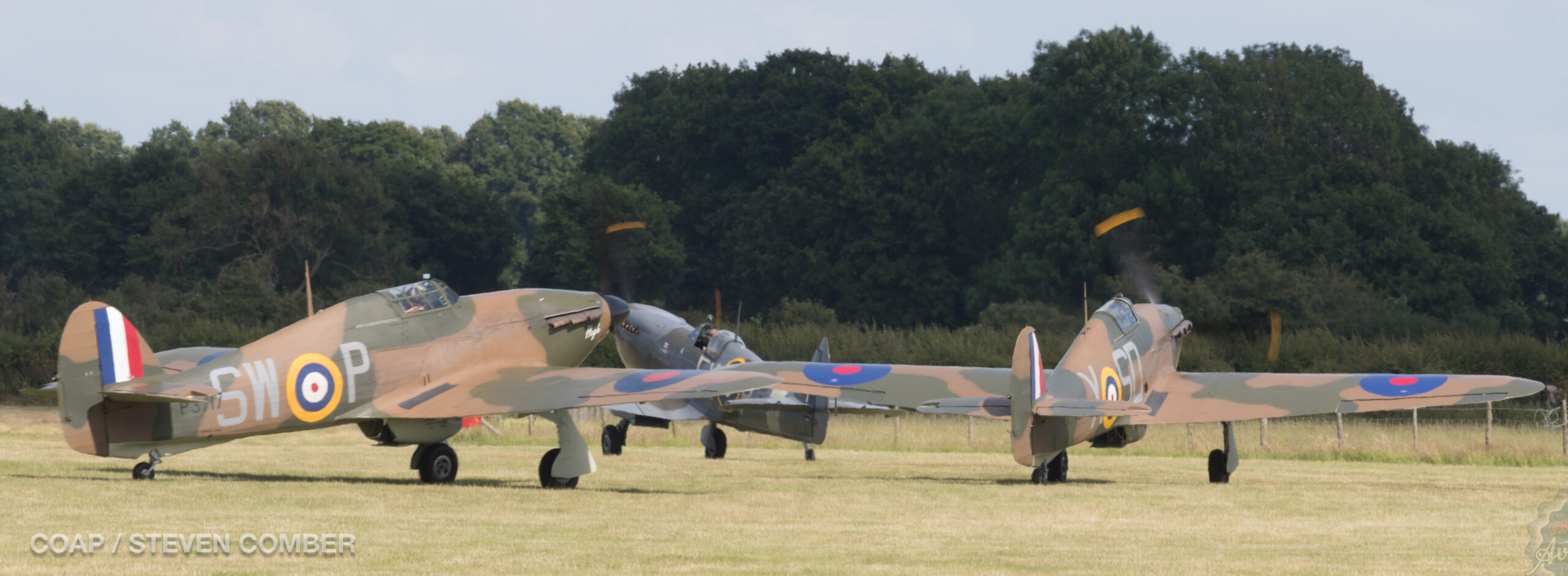 Once again the Centre of Aviation Photography (COAP) engaged in an air-to-air photography opportunity with some of the participants including Hurricane Mk.I P3717 and Yak-3 F-AZIM, piloted by Stu Goldspink and Bob Davey respectively.