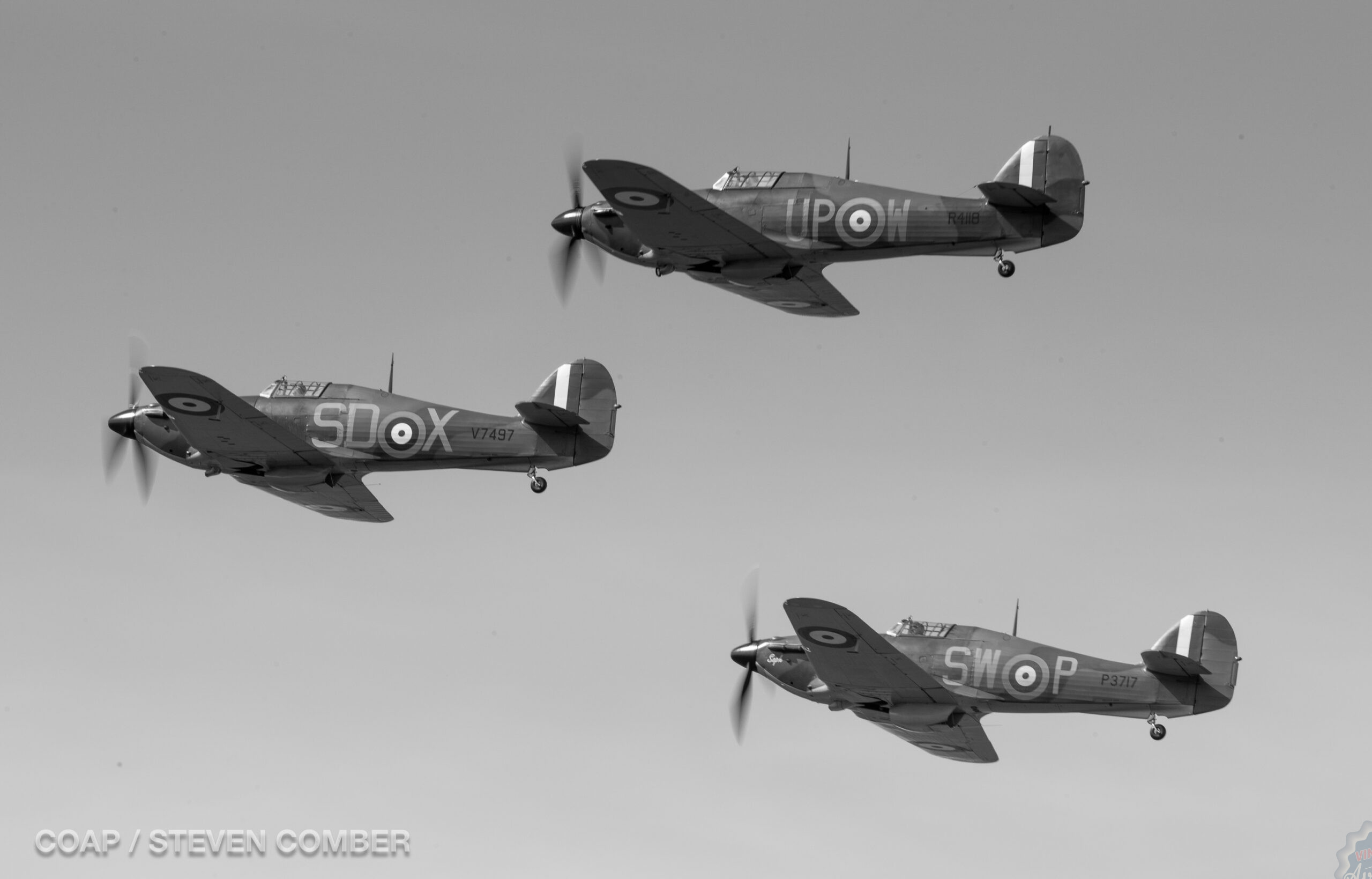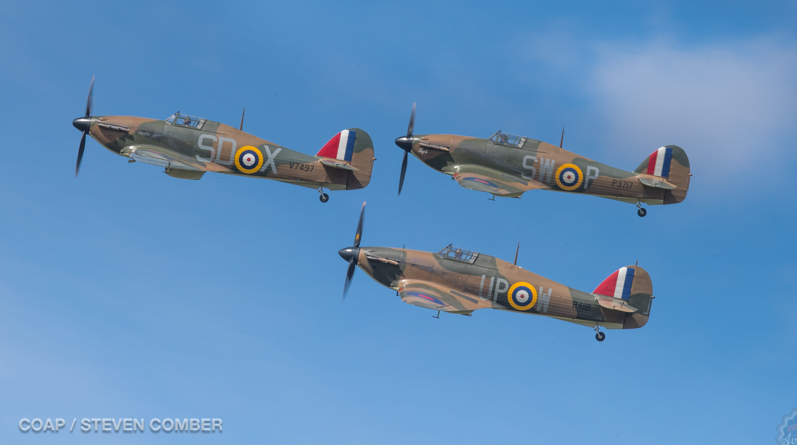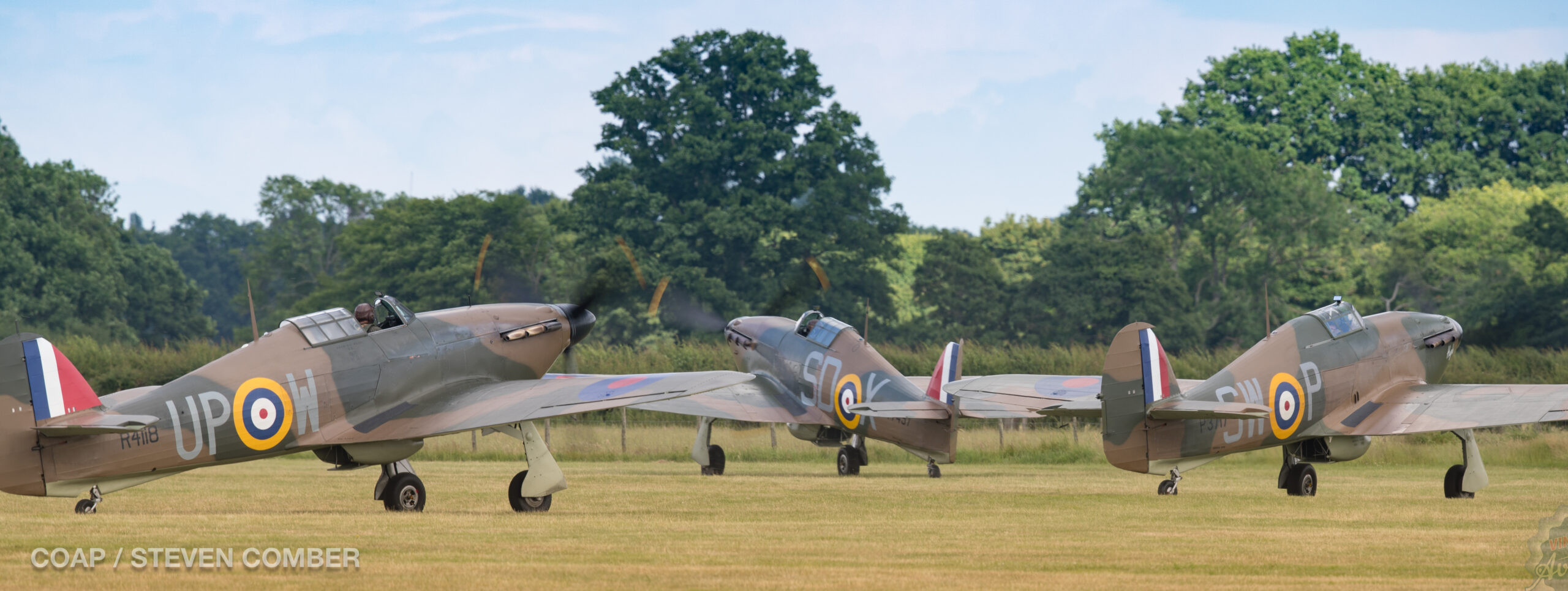 Once again the Centre of Aviation Photography (COAP) engaged in an air-to-air photography opportunity with some of the participants including Hurricane Mk.I P3717 and Yak-3 F-AZIM, piloted by Stu Goldspink and Bob Davey respectively.