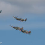 The display program each day included a biplane ‘Balbo’ comprised of a Stampe, Tiger Moths and a Jungman, followed by a B-17G (Sally B) & C-47 Skytrain pair, the Battle of Britain Memorial Flight’s Spitfire/Hurricane solo display, and a dynamic duel between a ‘Bf 109’ and Spifire Mk.IX. Aero Legends also fielded two Spitfires. Two Harvards flew, along with a pair of Dakotas. A T-6 Harvard made a solo display, and there was a wing walking routine from two Stearman biplanes. A Yak 3 also performed, but the finale came in the form of a ‘Balbo’ featuring four Spitfires and three Hurricanes!