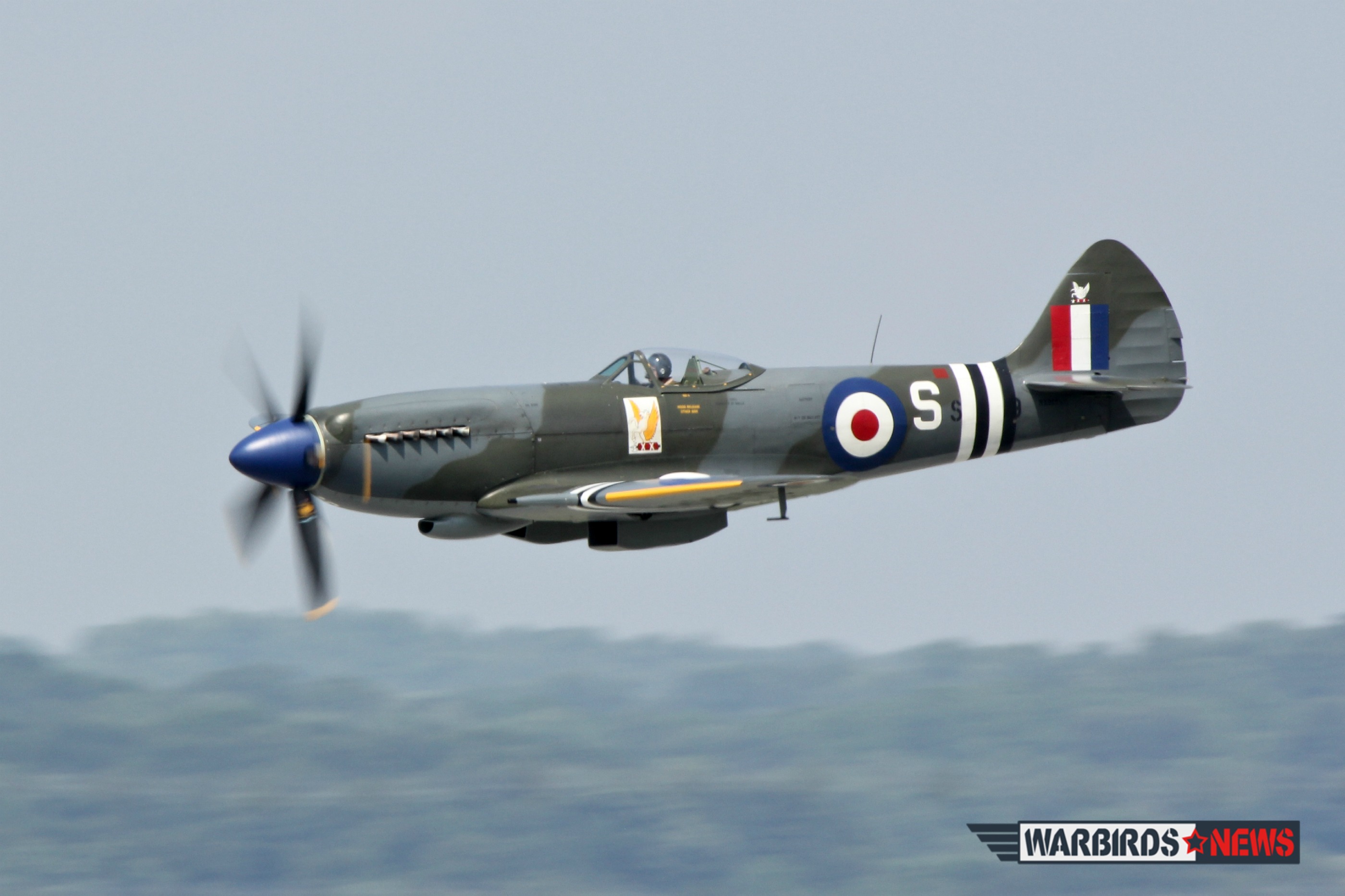 The airshow began with the L-Birds or liaison aircraft such as the Piper Cub, Stinson Sentinel and Aeronca Defender to name a few. The primary trainers and the advanced trainers were next with a seven ship formation of North American T-6 Texans. Transport aircraft made some impressive photo passes with the Curtiss C-46 Commando, Douglas C-47 Skytrain and Beech C45 Expeditor. The Battle of Iwo Jima had top cover from a Corsair, Helldiver, Dauntless and an Avenger while fighting off a Japanese Val replica. Aerobatics routines were flown in the Corsair, Mustang, Spitfire, Jungmeister, SNJ and Valiant.