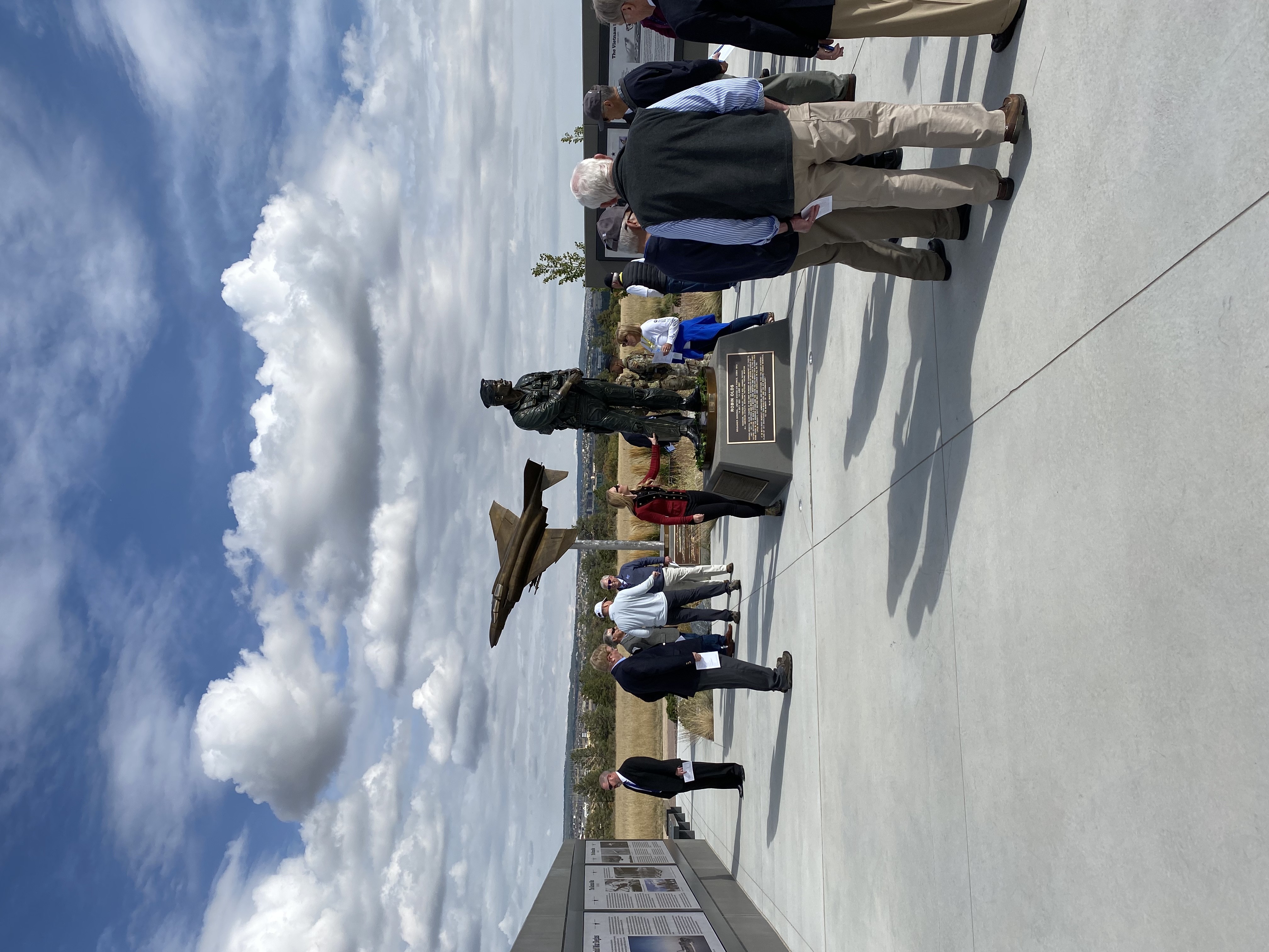 On Friday, October 1st, 2021, the Air Force Academy Foundation inaugurated the Air Warrior Combat Memorial (AWCM) at the approach to the north entrance of the United States Air Force Academy near Colorado Springs, Colorado. The ceremony took place in the presence of graduates from earlier classes as well as Christina Olds and Jennifer Newman, daughter and granddaughter of the legendary fighter pilot and combat leader, General Robin Olds and . The dedication ceremony lasted approximately 30 minutes.