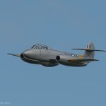 Another jewel honoring the Royal Air Force was the oldest flying jet in the world: Gloster Meteor T7 WA591. This recently imported aeroplane is owned and operated by the World Heritage Air Museum. The appearance of the Meteor was especially poignant, due to the tragic loss of her owner, Marty Tibbitts, in the crash of his deHavilland Venom shortly after departing for Oshkosh on July 20th. It is an enormous testament to the spirit of Tibbitts family and friends that the Meteor made her appearance.