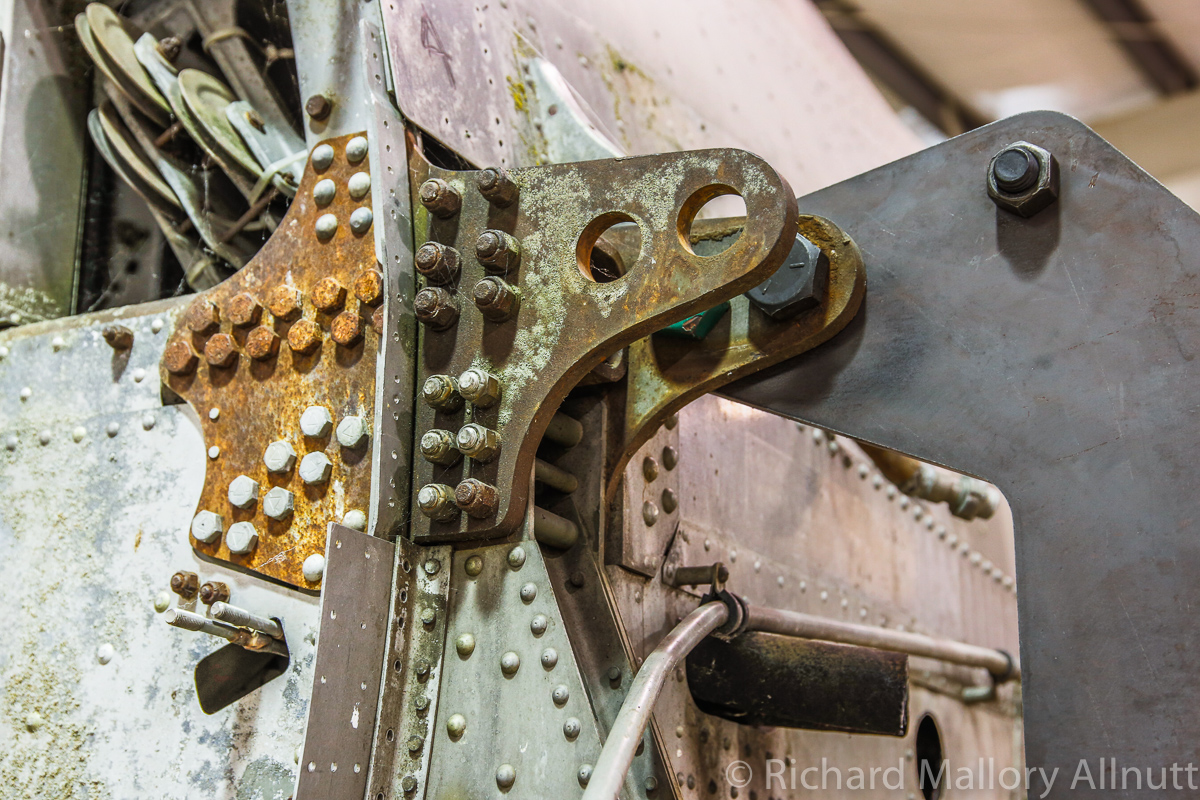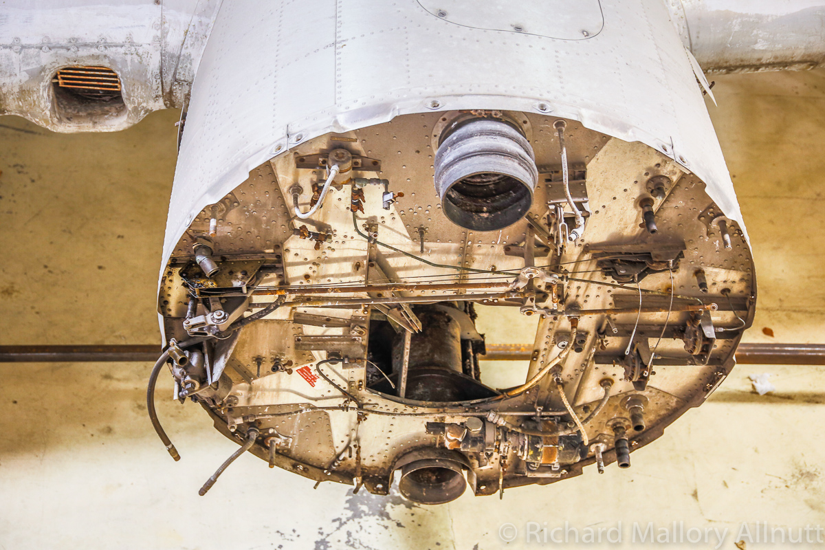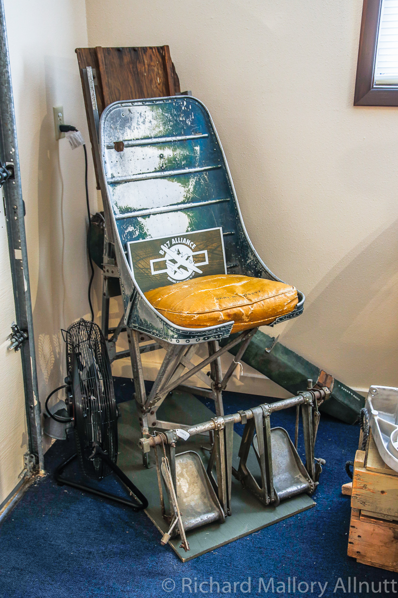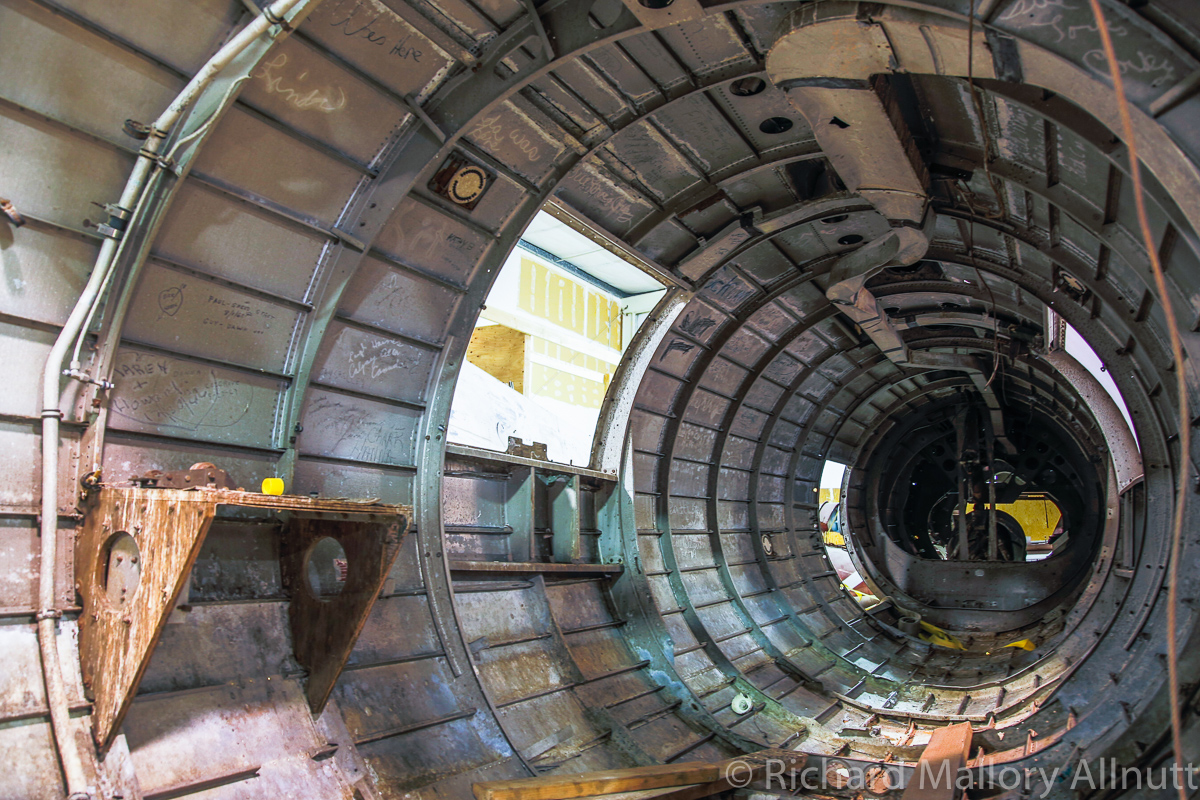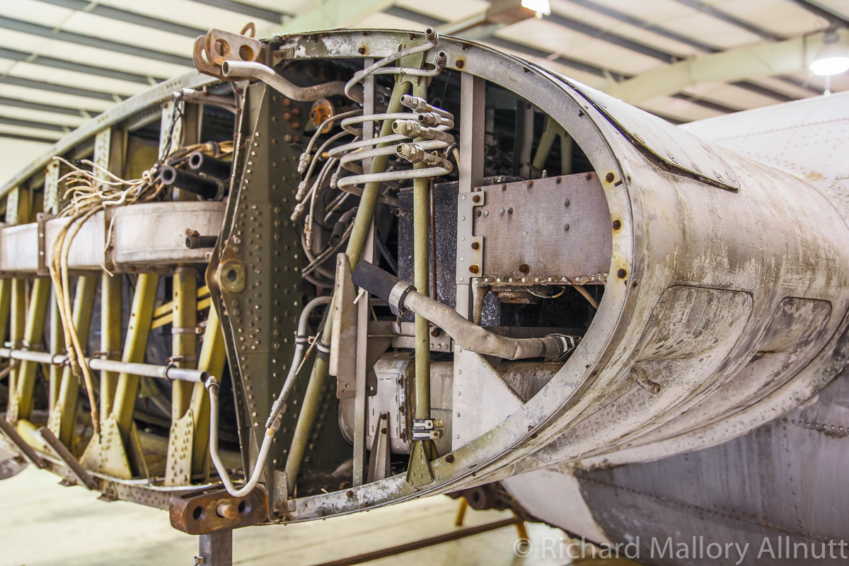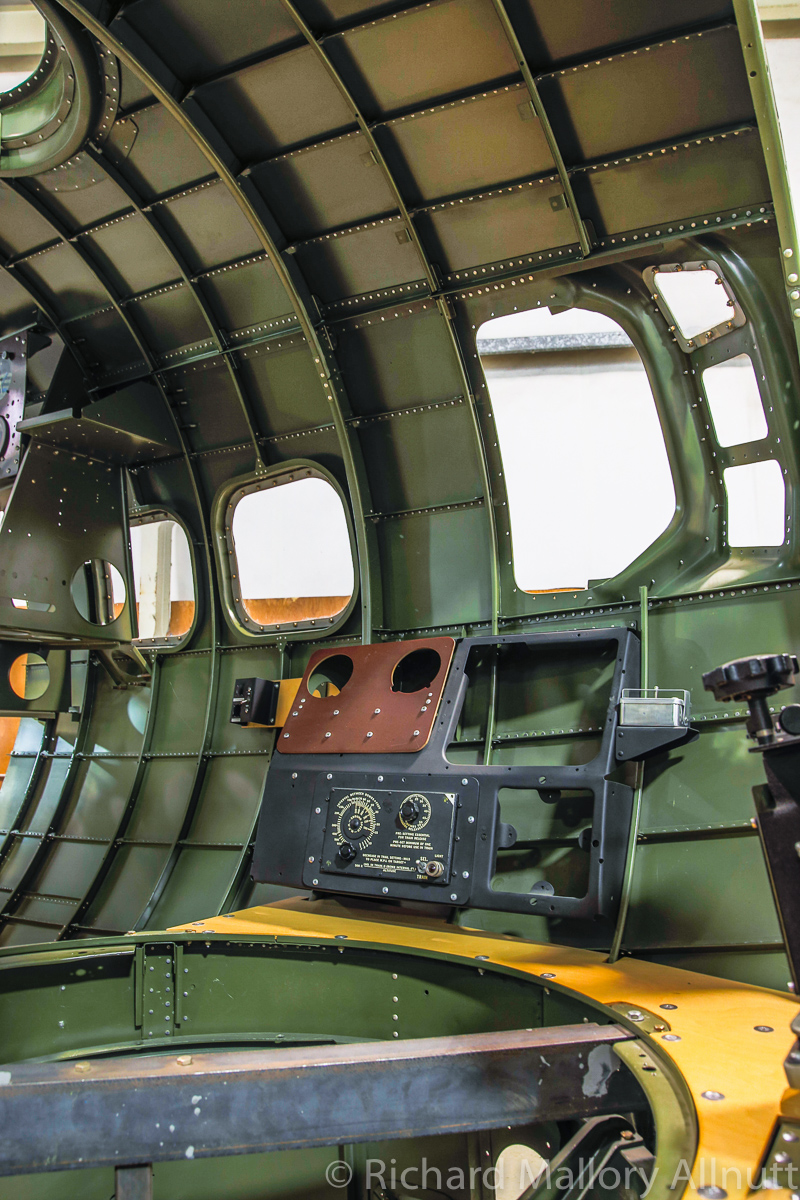 The B-17 Alliance Group is coordinating their efforts with several other B-17 restoration projects, and have acquired a jig for the main fuselage in the process. They recently installed the fuselage in this jig, and now comes the hard graft of restoring the bomber. Wandering around the hangar, which is filled to bursting with B-17 parts and components, was a fascinating exercise. When you enter from the museum exhibition room, the first thing you see is the fully restored, forward nose section…