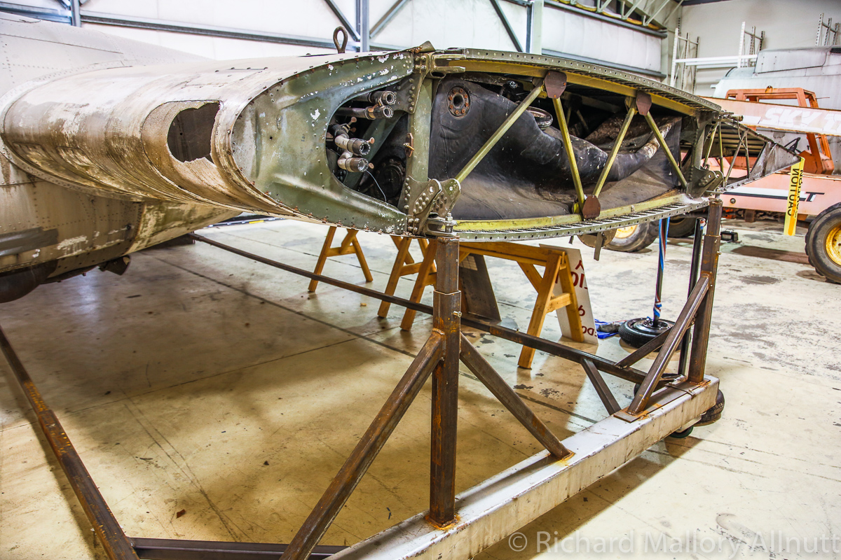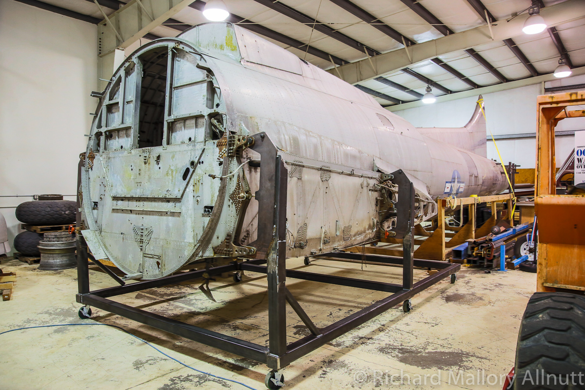 The cockpit section is already in its jig, and partially disassembled. This work occurred some years ago, but the task of restoration will soon become a priority again, now that the rest of the aircraft is securely in its new home.