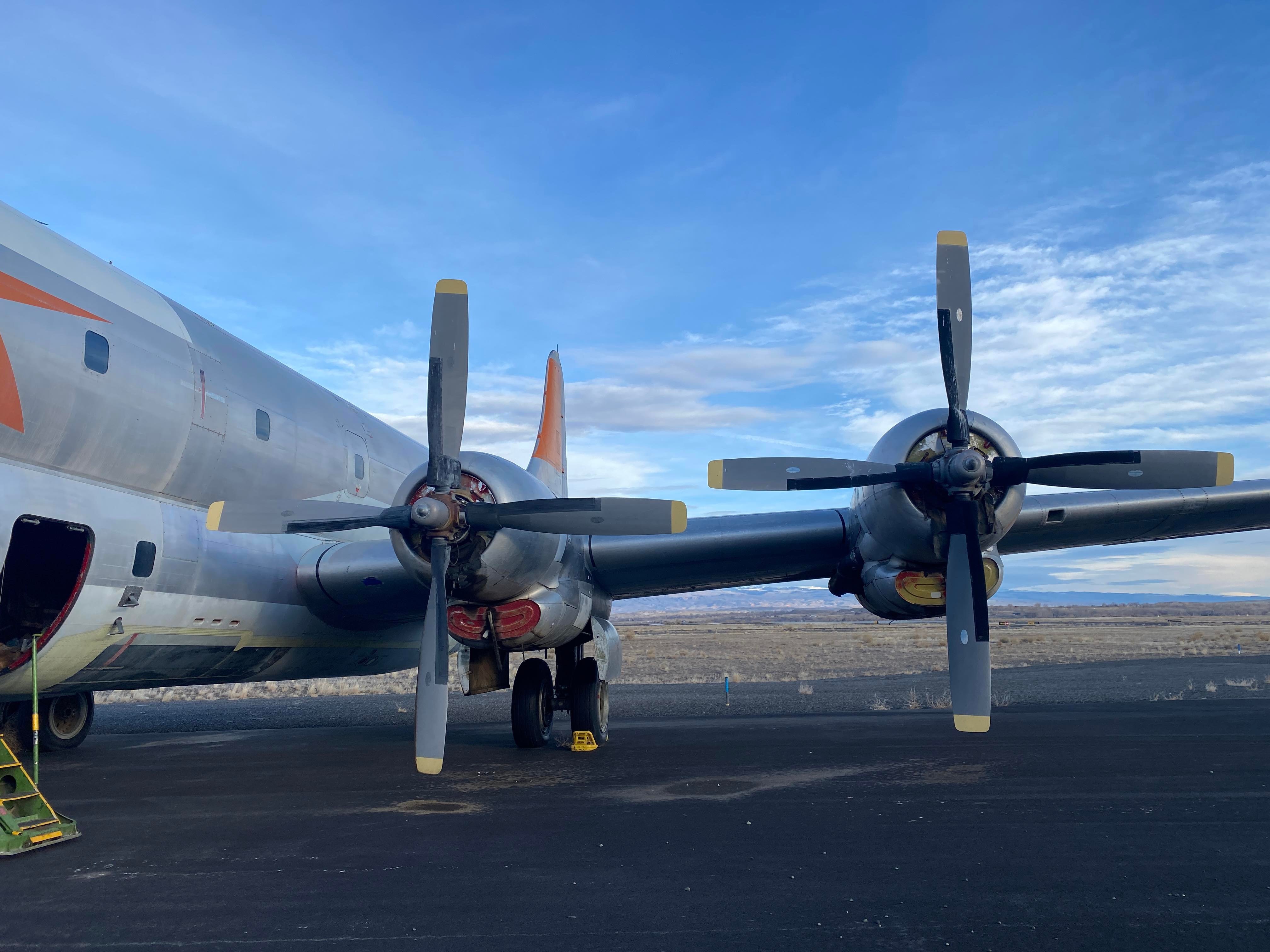 Negotiations with B&G Industries for their vast supply of C-97 parts actually began four years ago. The BAHF team spent several days looking over the C-97’s in storage at Greybull, these being the last examples from the legendary Hawkins & Powers firebomber fleet. They evaluated what was on hand and what items could prove valuable to Angel of Deliverance’s longterm maintenance. As a result of their investigations, BAHF came to an agreement with B&G Industries on December 7th, 2021 which will allow them to acquire several of these long-dormant C-97s for essential spare parts. This will include a dozen serviceable Pratt & Whitney R-4360-59B Power Packs with records, propellers, brake assemblies and myriad spare parts. The purchase will ensure the Angel of Deliverance’s longevity as the world’s last airworthy Boeing C-97.