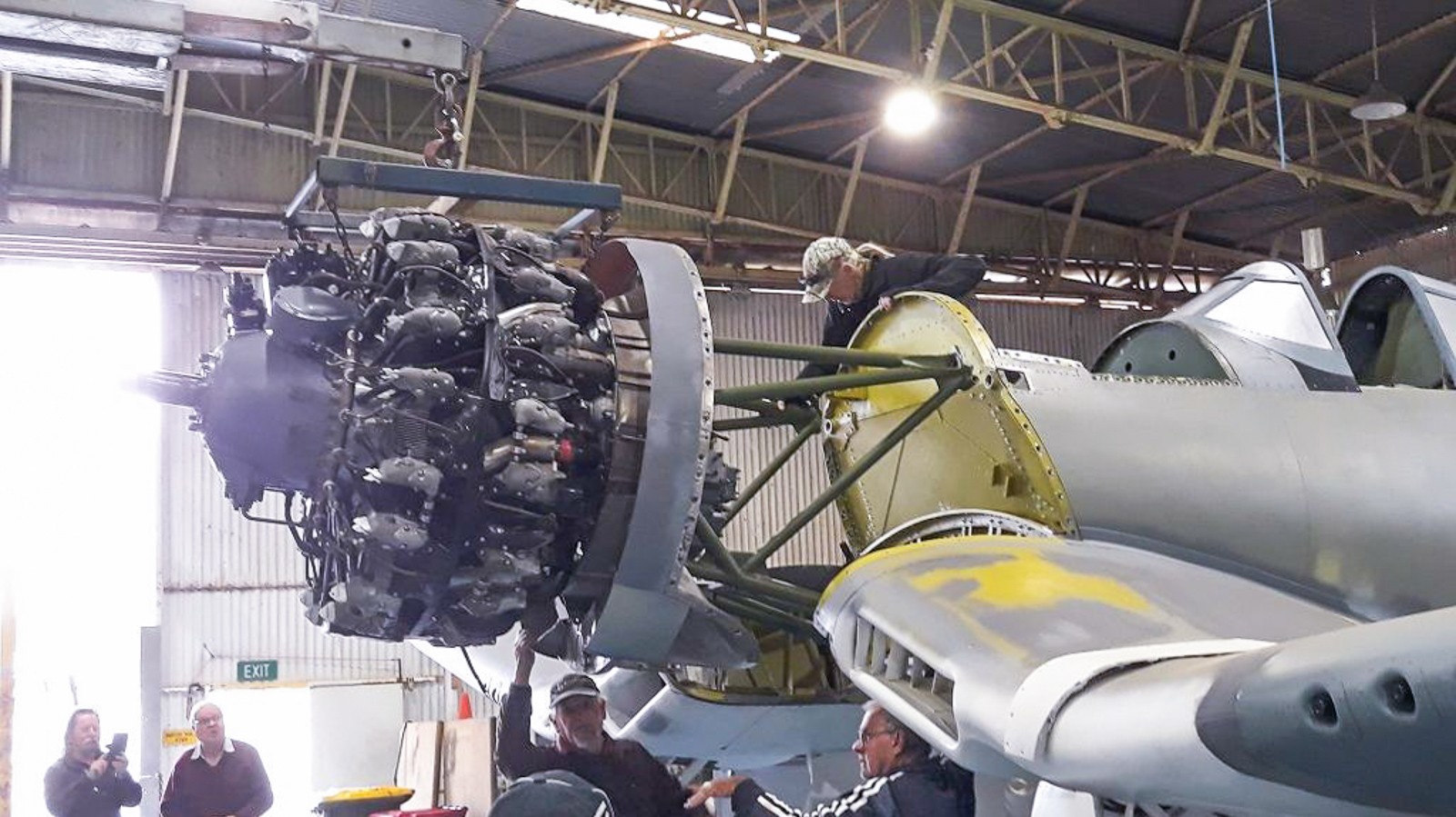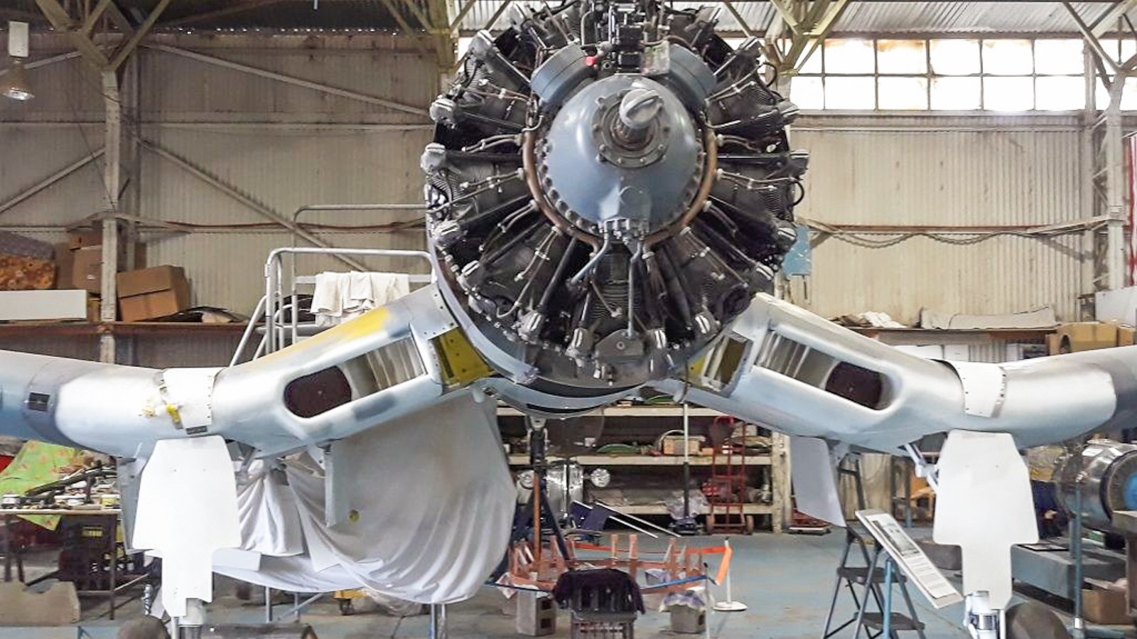 We have been following the restoration of Vought F4U-1 Corsair Bu.02270 at Parafield Airport near Adelaide, Australia for some years now. Owned by Bob Jarrett, the fighter is a USMC combat veteran from the Pacific Theatre, and spent many years partially submerged in a brackish mangrove swamp on Vanuatu following her wartime loss due to fuel starvation. Jarrett recovered what remained of the airframe, which essentially consisted of her centre section and outer wings, back in 2009, adding to this with fuselage parts from other wrecks on the island. He and his team have steadily restored the aircraft to its present state over the past eleven years and recently reached the point where they could finally re-install the massive Pratt & Whitney R-2800 engine. Just like field mechanics would have done in wartime, the restoration team chose to bolt the engine first to its tubular mount while the latter was separate from the airframe, then winch up the entire assembly to the aircraft’s firewall and carefully guide it in to the four fuselage attachment points. While the Corsair is under rebuild to static display condition only, the restoration team has gone to great lengths to ensure her accuracy; she will serve as a marvelous example of this all-but-extinct variant of the type.
