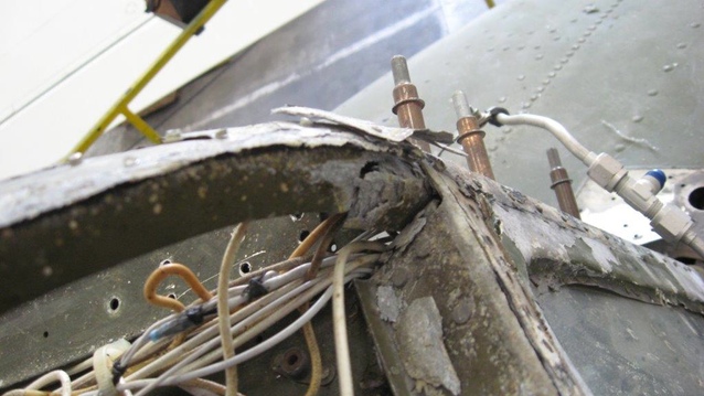 2) As sometimes happens in a project like this, opening up new areas of the plane to closer inspection revealed more corrosion than we hoped. It’s not a complete disaster, but will require time and money to fix.