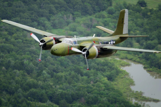 This landmark flight involved the CAF Sierra Hotel Sponsor Group 1944 A-26 Invader attack bomber, a powerful aircraft with a 2,000 HP radial engine. During the flight, the aircraft operated on two different types of gasoline. The right engine used the newly developed unleaded aviation fuel, while the left engine continued to use the traditional leaded gasoline that has been the industry standard for decades. According to Mahaffey, there was no noticeable difference in engine performance despite the use of two different fuels. A-26C 44-35643 (N626SH) was built at the Douglas Plant in Tulsa, Oklahoma. Initially, it served as a stateside trainer for A-26 combat crews until the end of WWII. After the war, it was converted to the RB-26C configuration and later sold to the French Air Force, where it flew combat reconnaissance missions in Indochina for 18 months. After its service with France, the aircraft returned to the U.S. and was converted into a corporate transport, flying in the U.S. and Canada before being acquired by the CAF. Following a landing mishap, it was grounded for 28 years, with 22 of those years spent in restoration by Sierra Hotel. In 2020, it finally returned to the skies over Oklahoma!
