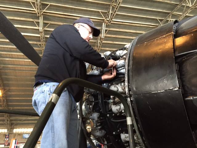 In additional news, Bill Goring added that, “We welcomed our other squadron airplane home last month as well, our Beechcraft T-34B N802HV. Our out-going Squadron Leader Jim Reynolds flew it from Baker Aviation in New Smyrna, Florida to Fort Worth. Just this week I appointed Nathan Carroll the Crew Chief of N802HV. Nathan is in his early 20’s and is an A&P, Private Pilot and is working on his degree in Aerospace Engineering. Nathan and the crew have some work to do on the T-34, but once it’s up and flying we look forward to taking it to air shows, offering flight experiences and doing formation training with it. We invite you to come out to the Vintage Flying Museum at Fort Worth’s Meacham Airport where we are based along side B-29 FIFI and a bunch of other cool airplanes….”