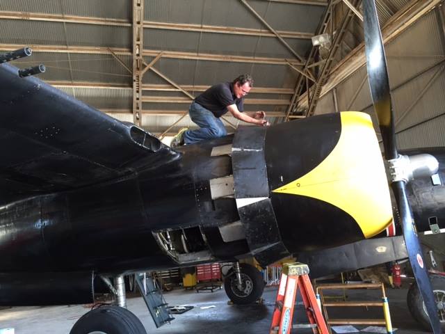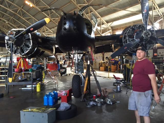 As the A-26 Invader Squadron’s Maintenance Officer, Bill Gorin recently told us, “We finished up the 2015 in November making every show we had a contract to appear at with the exception of the New Orleans Air Power Tour, and that was due to weather. We have been busy over the winter doing our scheduled winter maintenance. The airplane was in pretty rough shape when we got it in 2009 and we have been making big strides since then improving her reliability while trying to work in some restoration projects at the same time…… This winter we fixed numerous leaky push rod tube seals on the right engine, replaced the left generator, resealed the nose gear actuator, improved our intercom system and #1 VHF Com radio, resealed the left brake and installed new brake pads and installed new main aircraft batteries.”