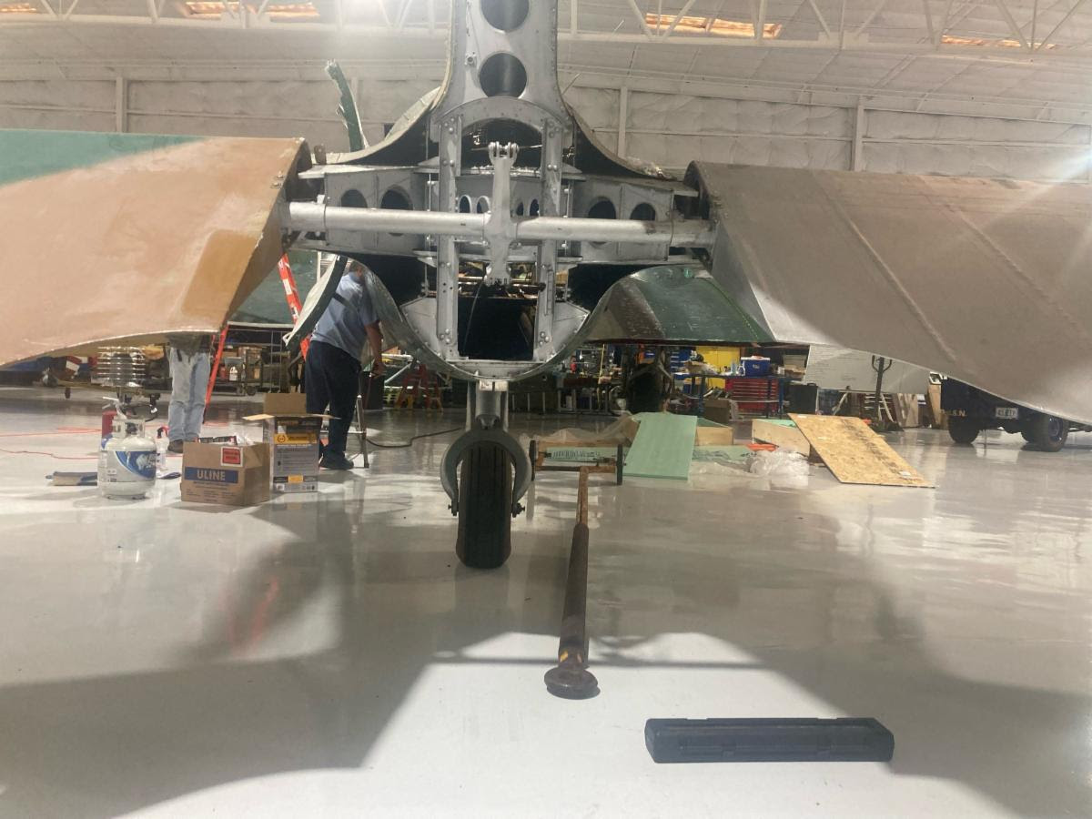 Spooky’s maintenance team, the Ghostbusters, are working on two major efforts now: completing the annual inspection and making the modifications needed to transform our aircraft from a C-47 into an AC–47. As with any project of this size, the need for additional work was uncovered in the form of some corrosion in the subfloor of the cargo bay. Rather than cut out and replace the bad sections of the floor beams, it was decided to remove each of the seven affected floor beams and replace them. As you might imagine, procuring these parts was a bit of a challenge but the team found all that was needed, and replacement is proceeding. Other pending work on the annual inspection includes new oil filters, control cable and fuel line inspections, new brake drums, cowl flap repairs, and more cleaning in preparation for painting.