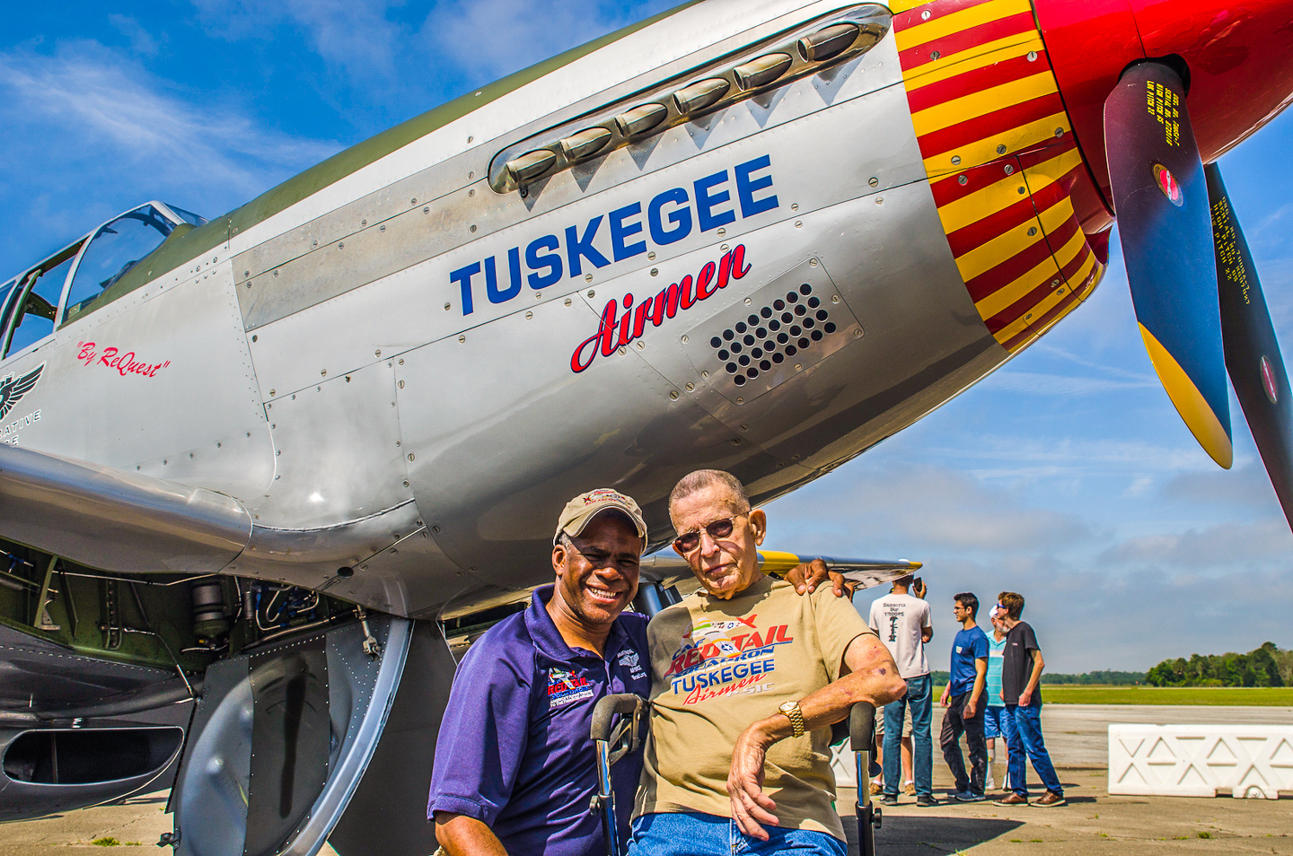 As luck would have it, fortune smiled on Van Iderstine during an airshow in New Smyrna Beach, Fla. when he met Brad Lang, CAF Red Tail Squadron Leader and son of a Tuskegee Airman, who was flying the Squadron’s P-51C Mustang. The emotional connection between the two was instantaneous: they were men who loved flying…one aging, one young…one white, one black.