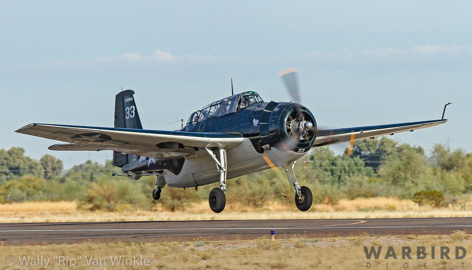On November 10, 2019, TBM-3E Bu. 53119 (N33BM) was on the move westward. The Avenger made an overnight stop at Marana Regional Airport (KAVQ) in Arizona after leaving Big Spring Texas on the way to her new home with the Historic Aircraft Preservation Group (HAPG) at Chino Airport (KCNO) in Chino, California.