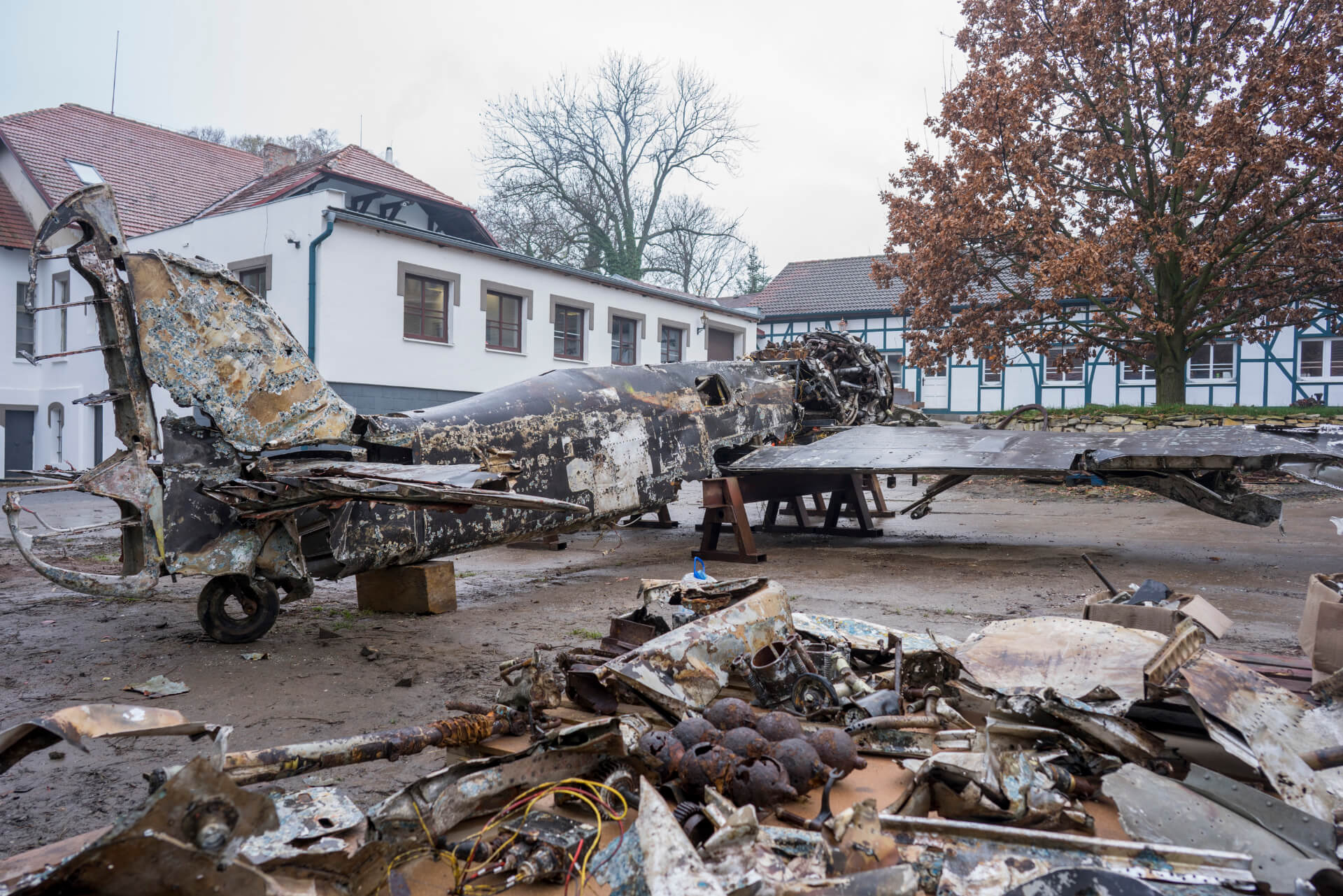 this machine was recovered from water / swamp. It was not destroyed. But if you look closely, it is assembled. The fuselage is broken into several pieces, the engine is torn out, the wing is in several pieces.