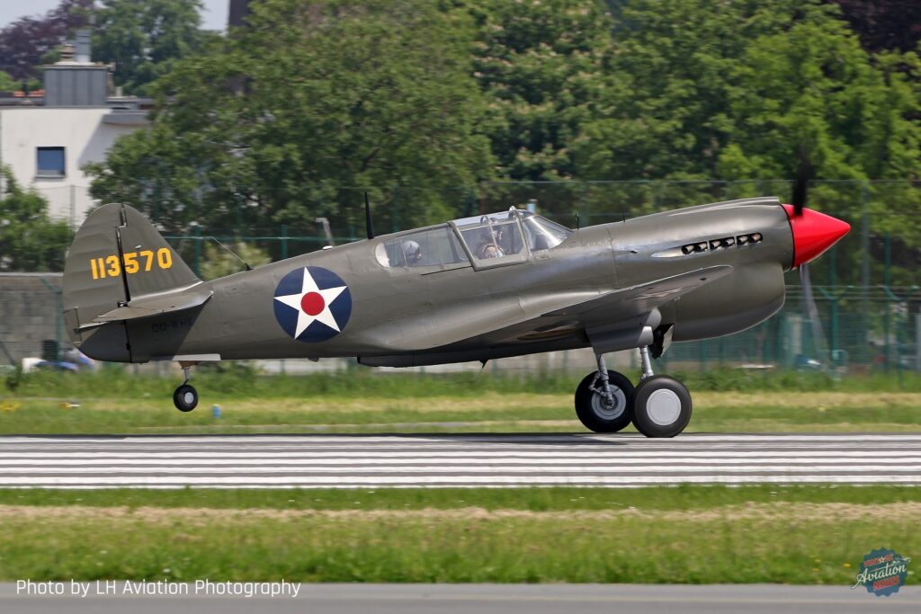 On May 12, 2024, Curtiss P-40E Warhawk USAAF #41-13570 (OO-WHK) flew for the first time under Belgian ownership. The flight took place at the Stampe Fly-In at Antwerp International Airport (Deurne) which is home of the Stampe and Vertongen Museum.