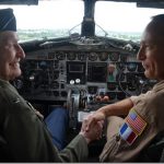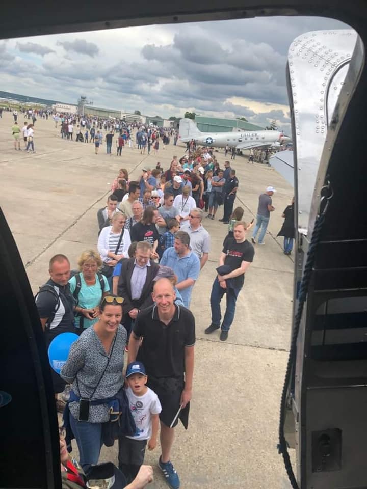 Back in 2019, one of the veteran pilots of the Berlin Airlift, Gail Halvorsen, flew into Wiesbaden aboard the D-Day Squadron’s C-47 Skytrain Placid Lassie. Halverson, was famously known as the “Candy Bomber” because he began the practice of dropping sweets suspended on tiny parachutes (fashioned from handkerchiefs) to the children in West Berlin as his cargo plane approached touchdown in the besieged city. Col Halvorsen passed in 2022, so this year his daughter flew in Western Airlines to celebrate the event.