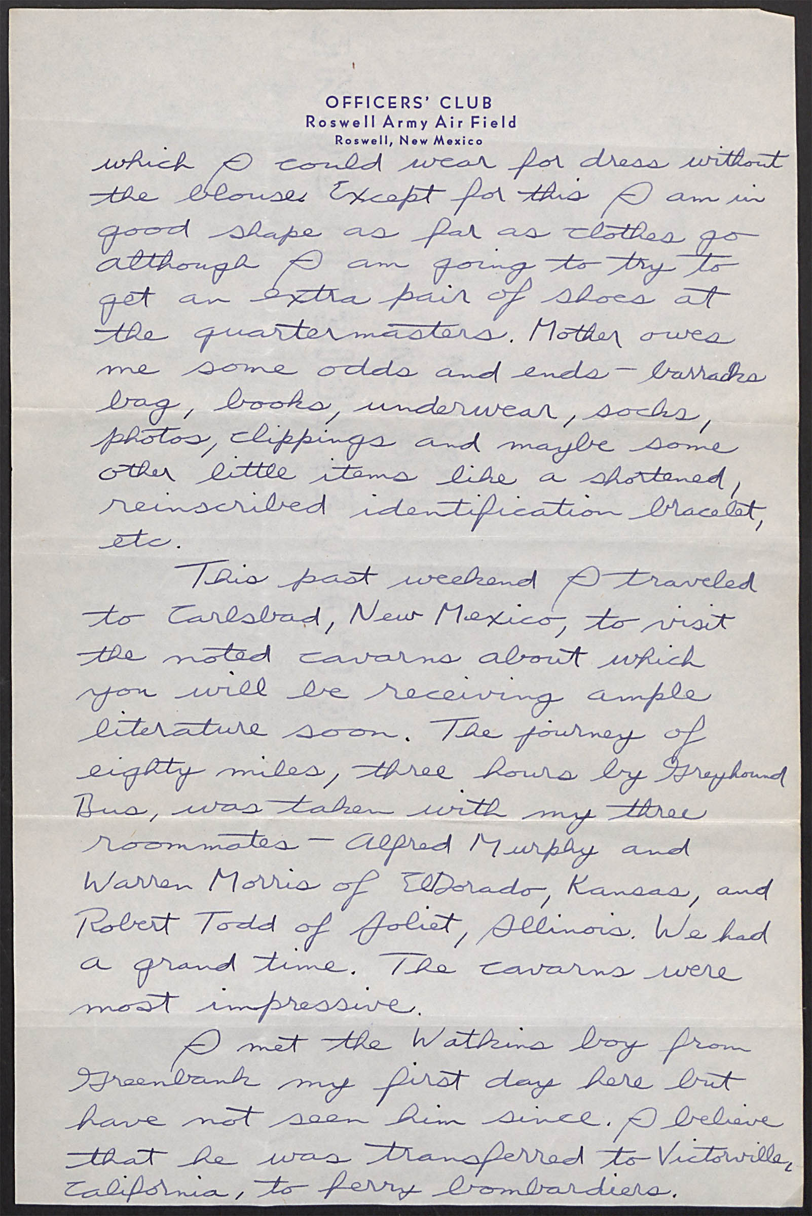 See the following four images as an example of a letter you can read… this one is from Ralph Minker describing his life while training at Roswell Army Air Field in New Mexico.