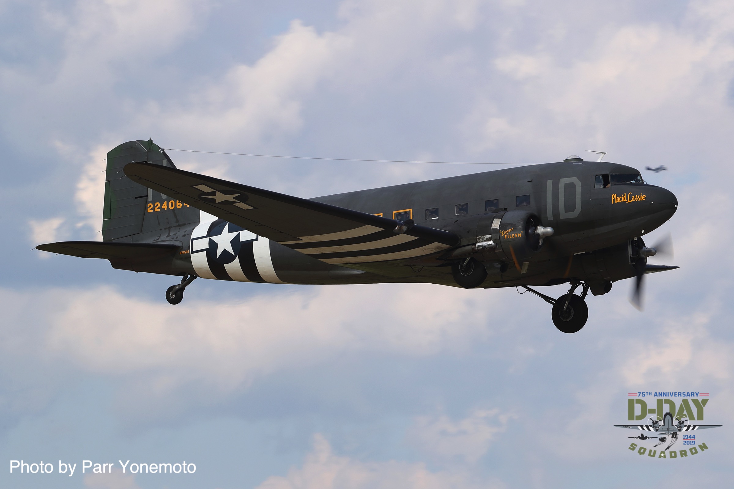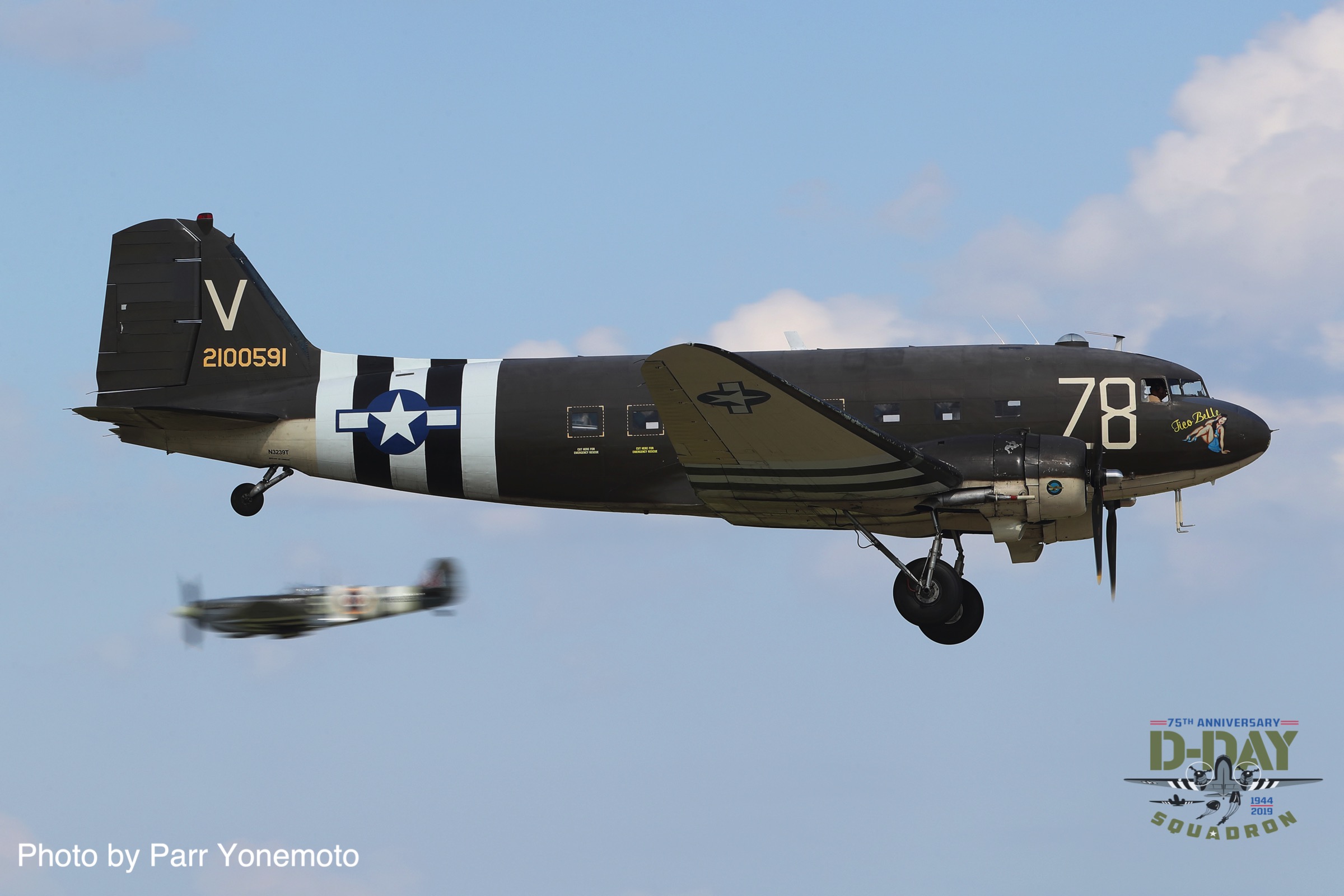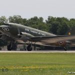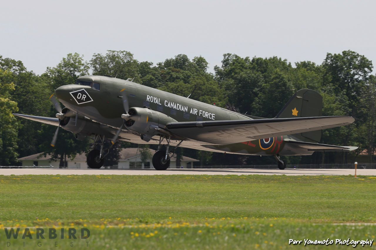 Canadian Warplane Heritage’s D-Day Veteran Douglas Dakota Mk.III FZ692 painted in the markings she wore at the end of WWII while serving with 437 Squadron. She participated in both Operation Overlord and Varsity (the crossing of the Rhine) and had the nickname Kwitcherbitchen during her time with 233 Squadron at RAF Blakehill Farm in England. She flew dozens of missions during WWII. (photo by Parr Yonemoto)