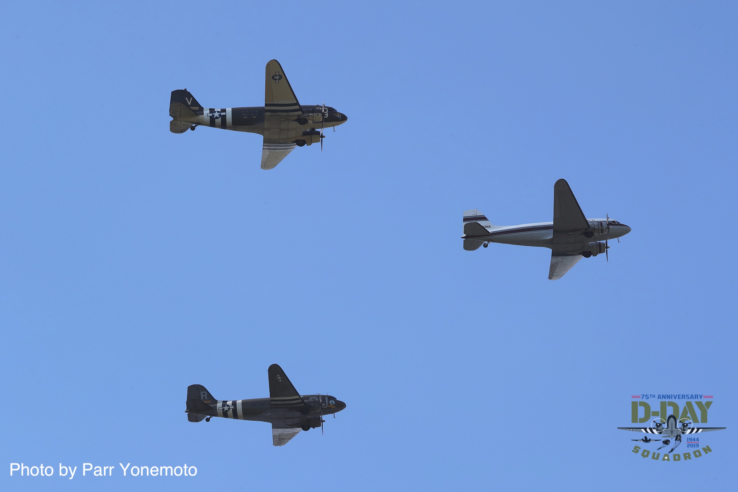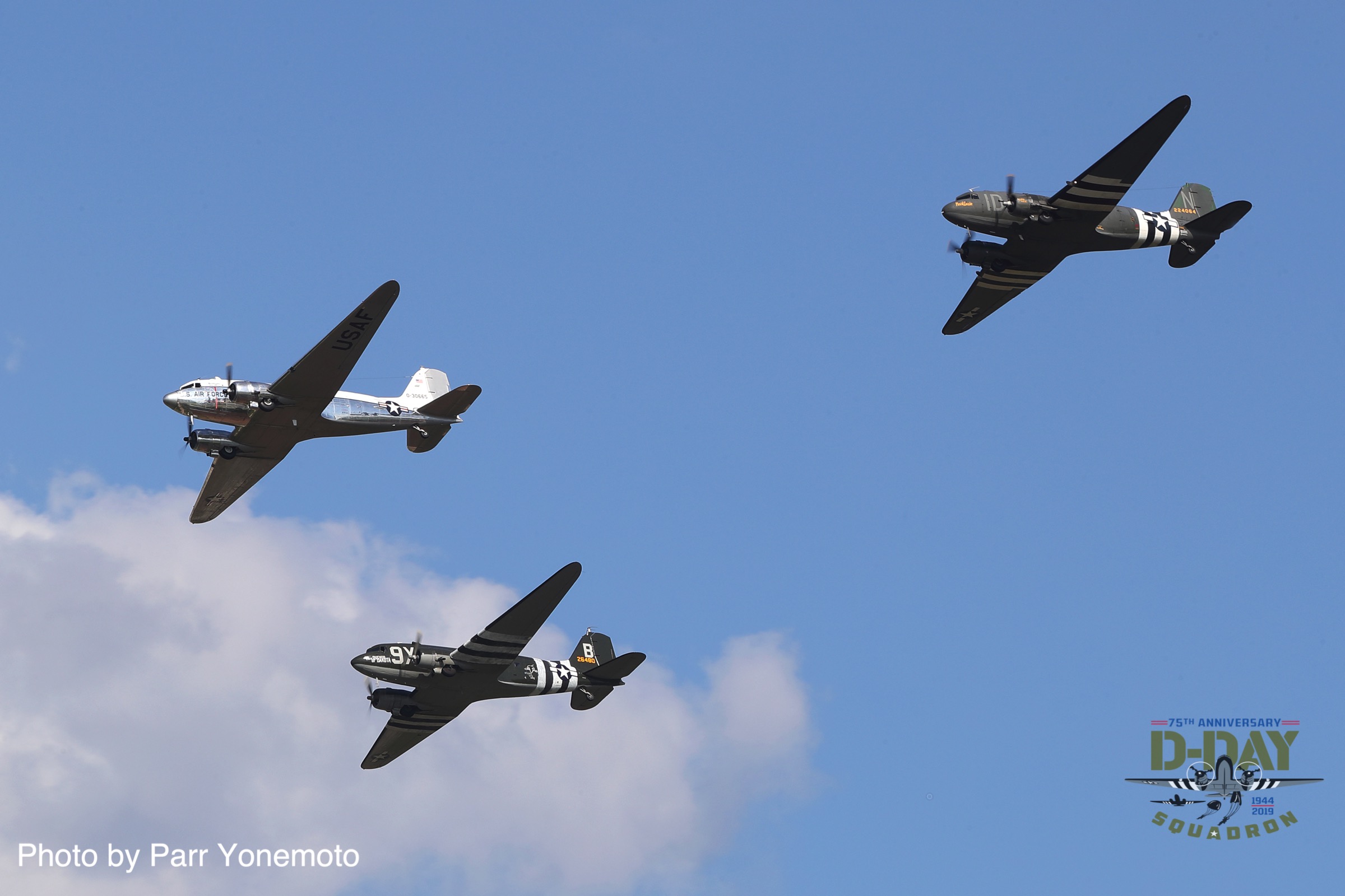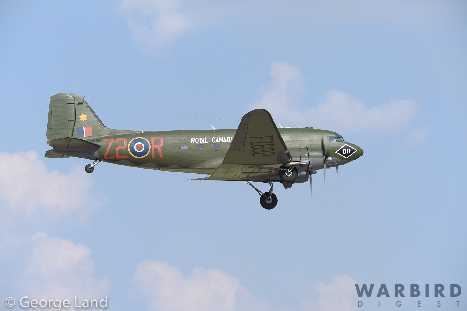 Canadian Warplane Heritage’s D-Day Veteran Douglas Dakota Mk.III FZ692 painted in the markings she wore at the end of WWII while serving with 437 Squadron. She participated in both Operation Overlord and Varsity (the crossing of the Rhine) and had the nickname Kwitcherbitchen during her time with 233 Squadron at RAF Blakehill Farm in England. She flew dozens of missions during WWII. (photo by Parr Yonemoto)