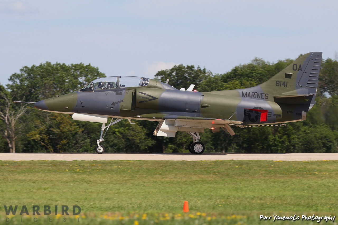 Richard Sugden’s Douglas TA-4J Skyhawk Bu.158141 on the runway at EAA AirVenture Oshkosh 2019. (photo by Parr Yonemoto)